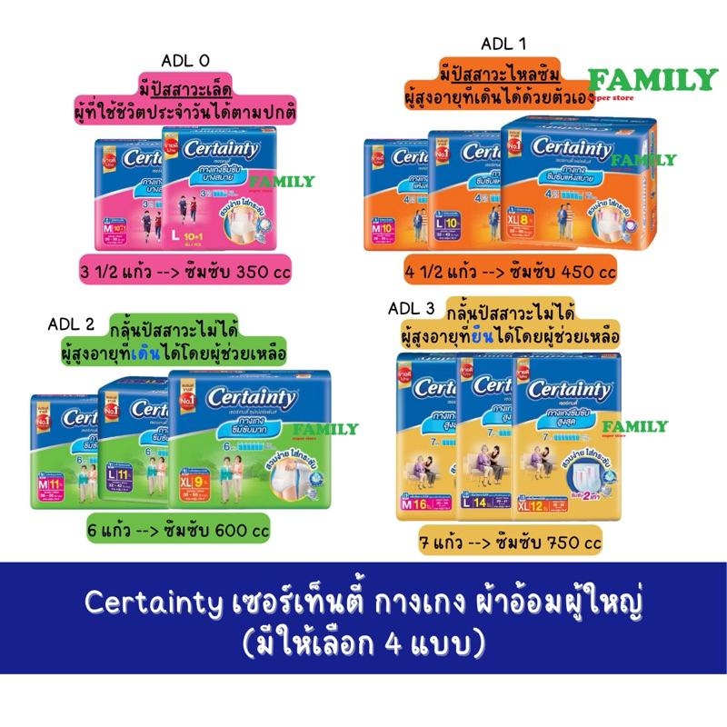 Certainty เซอร์เทนตี้ กางเกง ผ้าอ้อมผู้ใหญ่ (มีให้เลือก 4 แบบ)