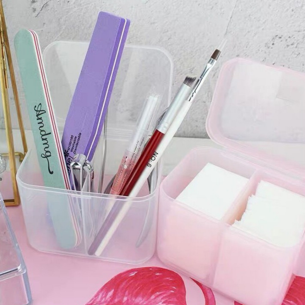 💅👱♀️กล่องใส่สำลี 2 ช่อง ใส่อุปกรณ์เล็บ ชุดสี่เหลี่ยมผืนผ้าช่วยให้แผ่นผ้าฝ้ายเรียงซ้อนกันอย่างเป็นระเบียบและมองเห็นได้ 💅