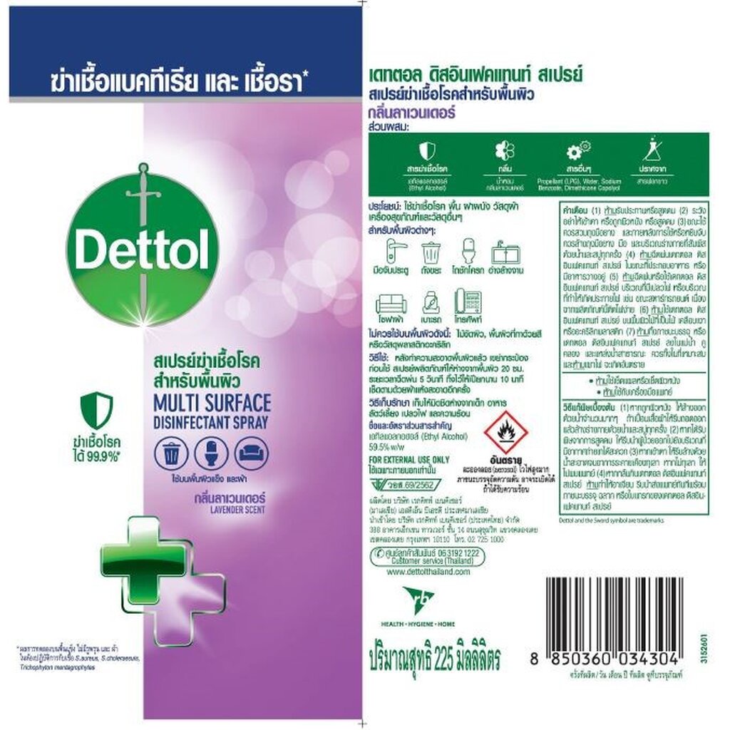Dettol เดทตอล ดิสอินเฟคแทนท์ สเปรย์ กลิ่นลาเวนเดอร์ 225มล.