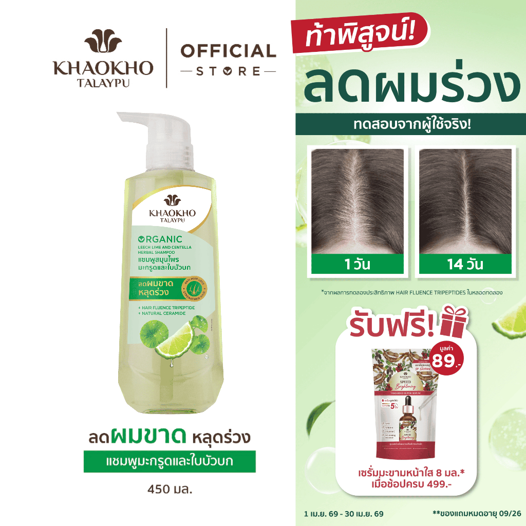 Khaokho Talaypu เขาค้อทะเลภู แชมพู ยาสระผม สูตรมะกรูดและใบบัวบก ช่วยลดผมร่วง (450 มล.)