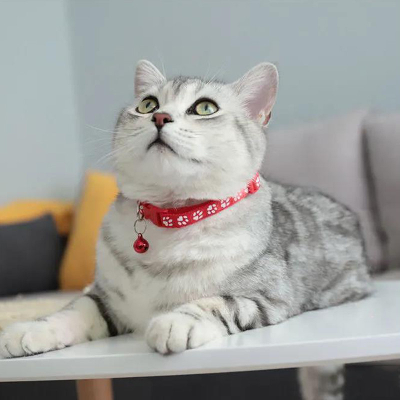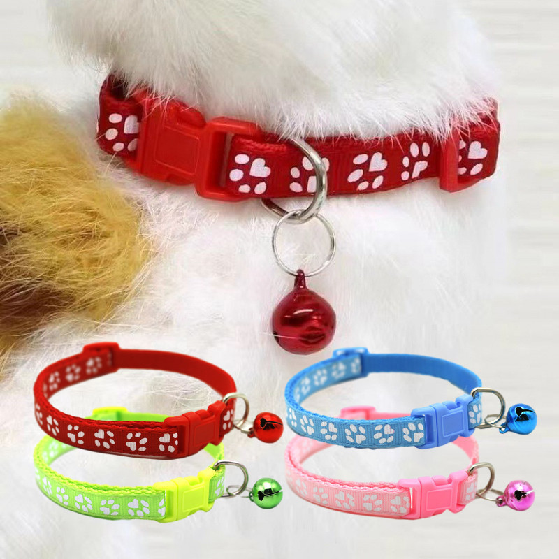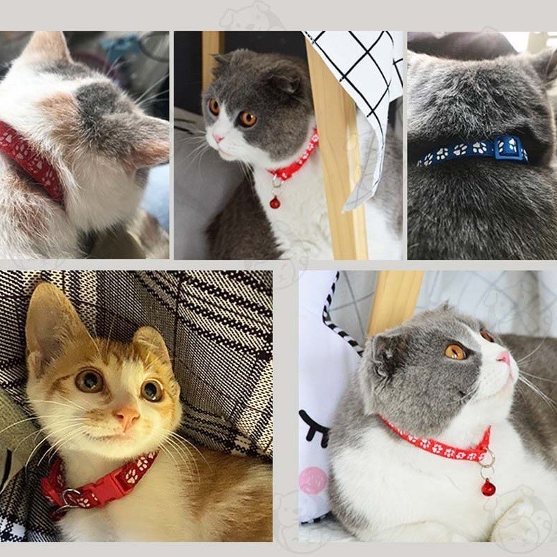 🔥HOT🔥การจัดส่งในประเทศไทย🐱🏍ปลอกคอแมว ปลอกคอสัตว์เลี้ยง ลายอุ้งเท้าติดกระดิ่ง แบบปรับขนาดได้ 18-30 ซม.