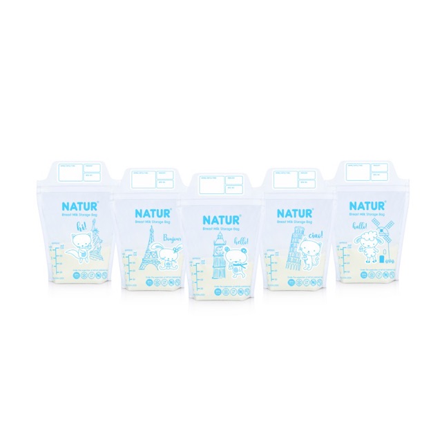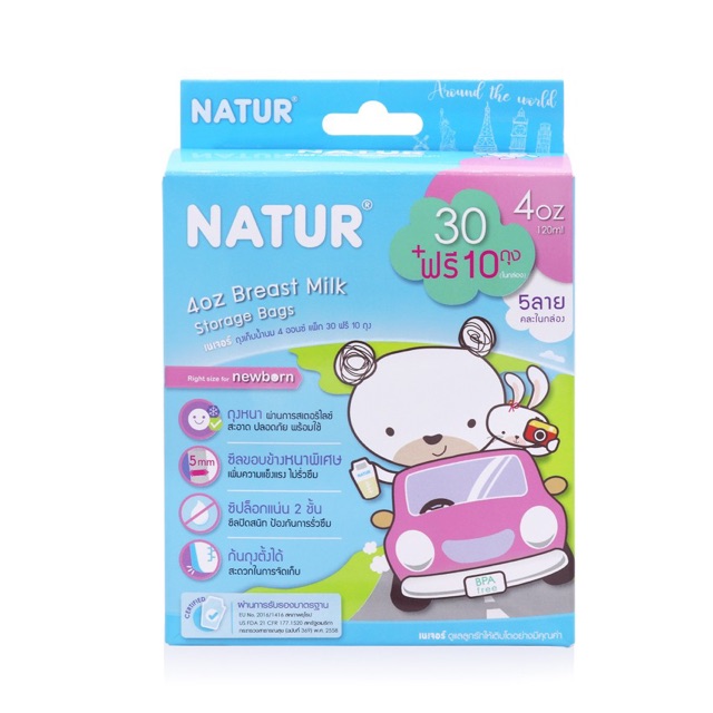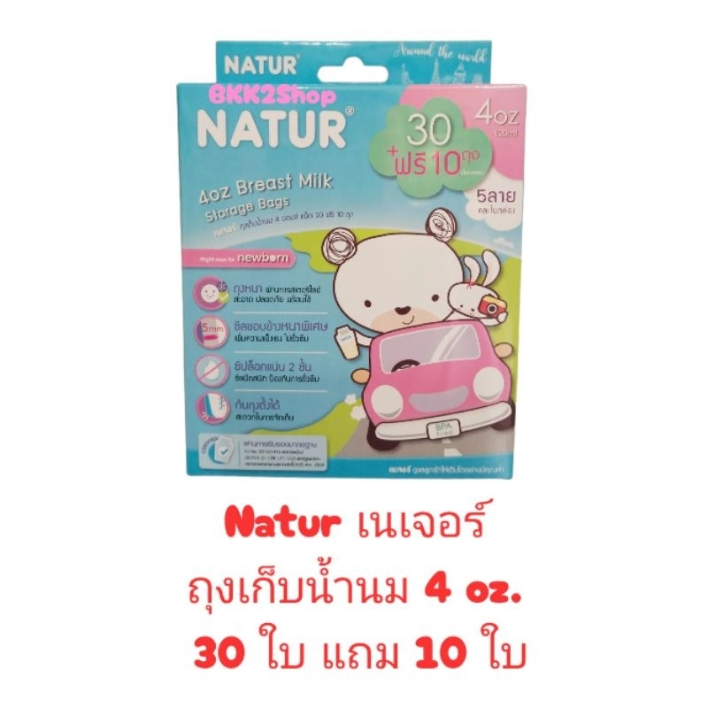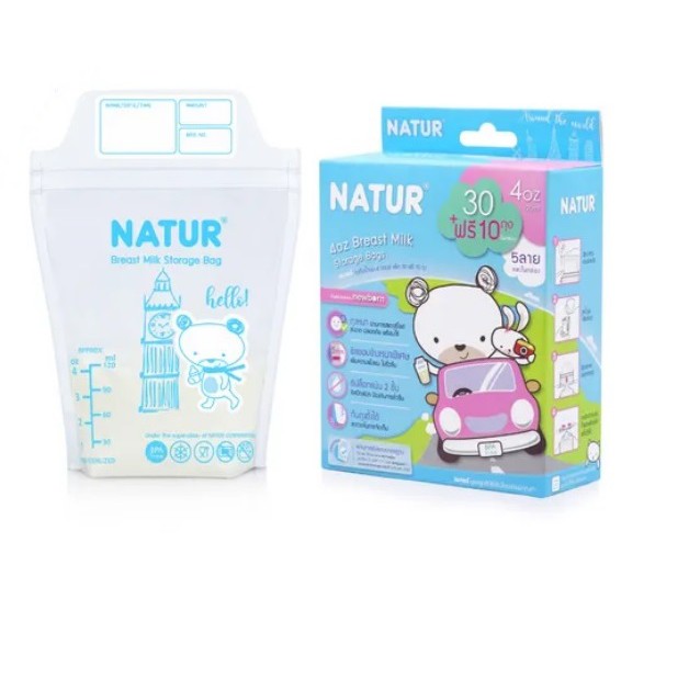 NATUR เนเจอร์ ถุงเก็บน้ำนม (ลายคิวตี้) ขนาด 4 ออนซ์ แพ็ค 30 ฟรี 10 ถุง
