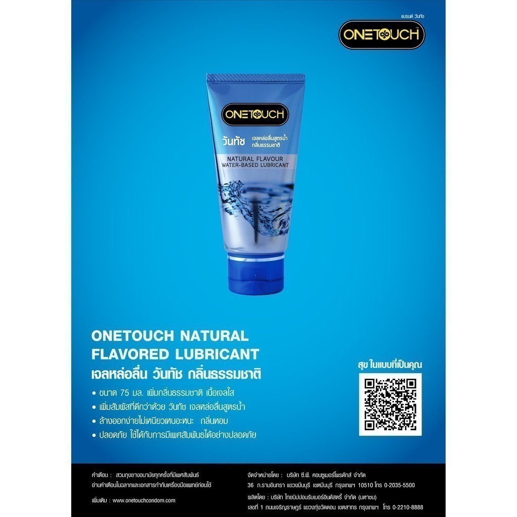 ลดเพิ่ม 30% 🔥 onetouch gel เจลหล่อลื่น วันทัช สูตรน้ำ ดั้งเดิม 75ml one touch GEL***