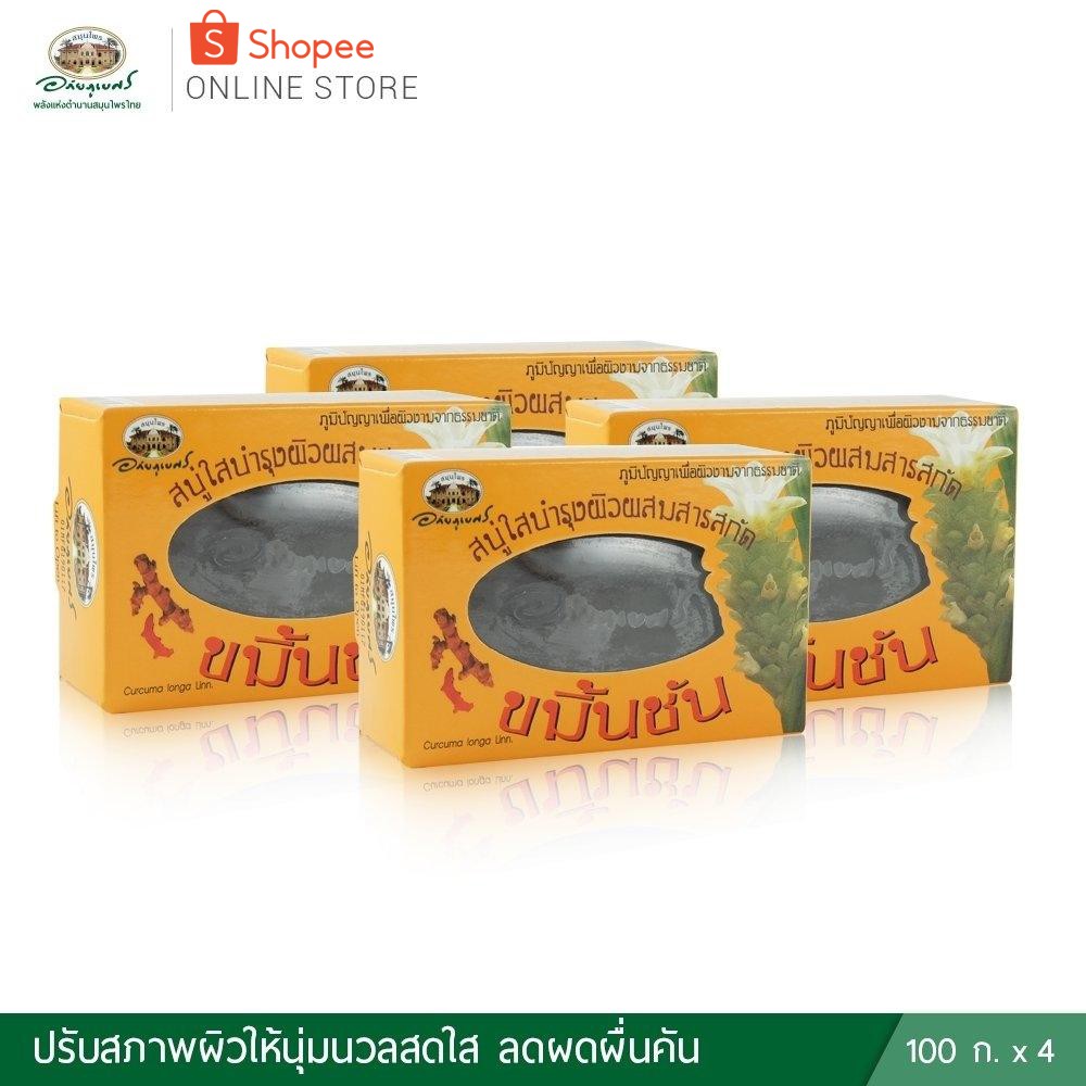 สบู่ใสขมิ้นชันผสมวิตามิน อี 4 ก้อน ✅(ผลิตใหม่ล่าสุด)✅++ส่งตรงจากรพ.อภัยภูเบศร