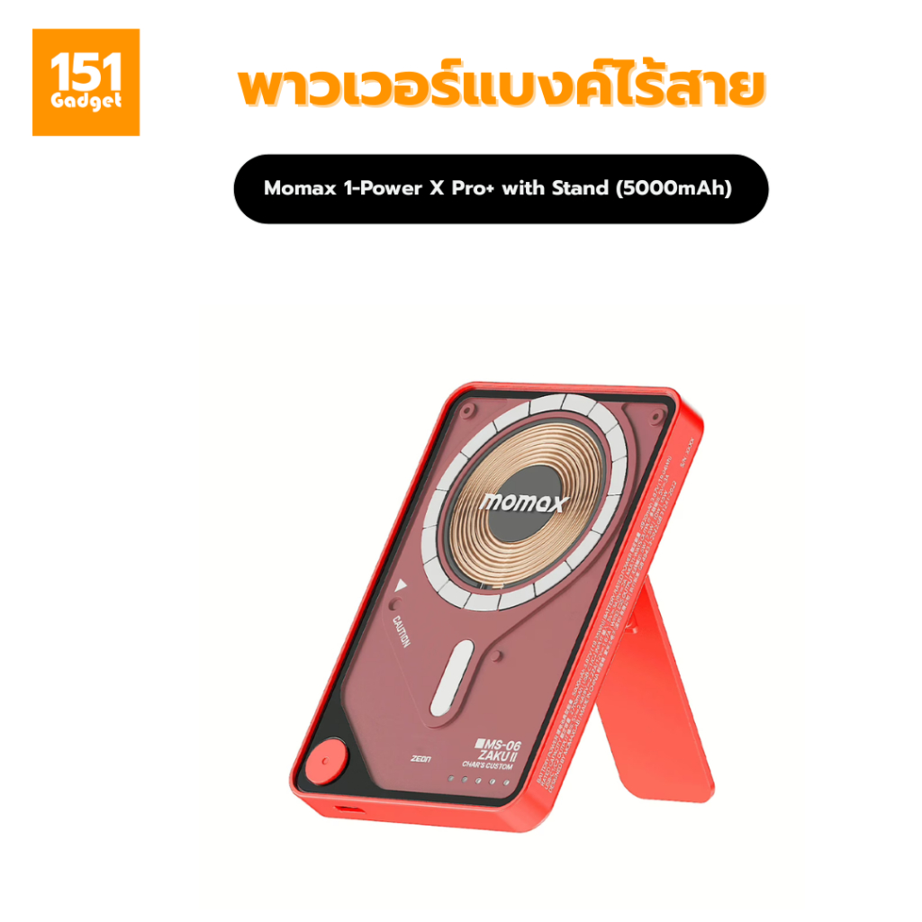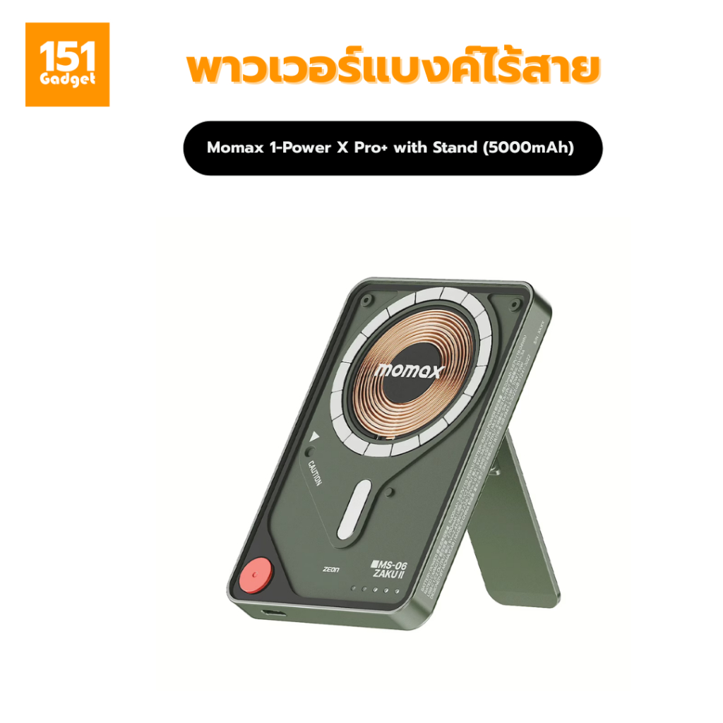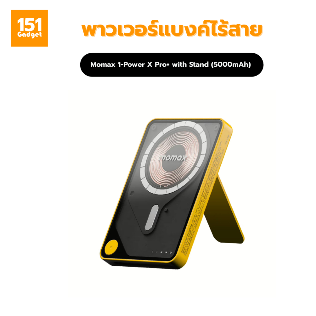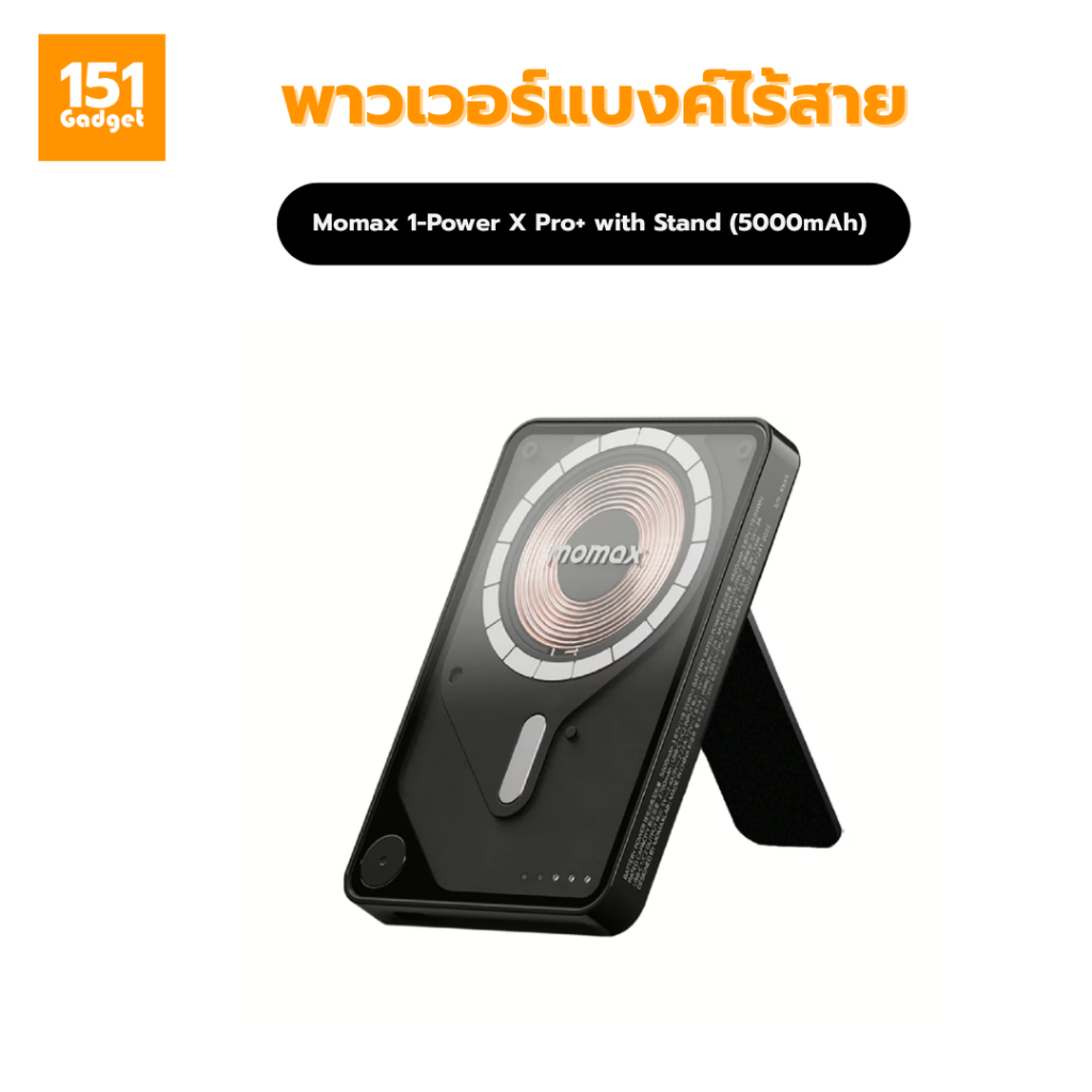 Momax 1-Power X Pro with Stand (5000mAh) พาวเวอร์แบงค์ไร้สาย+Built-in USB-C- รับประกัน 1ปี