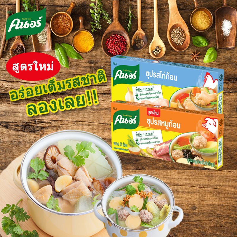 Knorr คนอร์ ซุปก้อน รสหมูและรสไก่ ขนาด 12 ก้อน