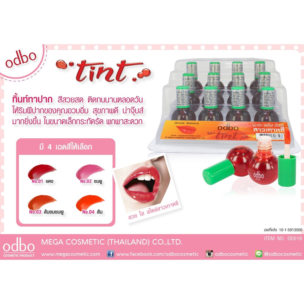 ผลิตภัณฑ์ตกแต่งริมฝีปาก โอดีบีโอ ทินท์ 2 มล.odbo Tint 2 ml. #OD518