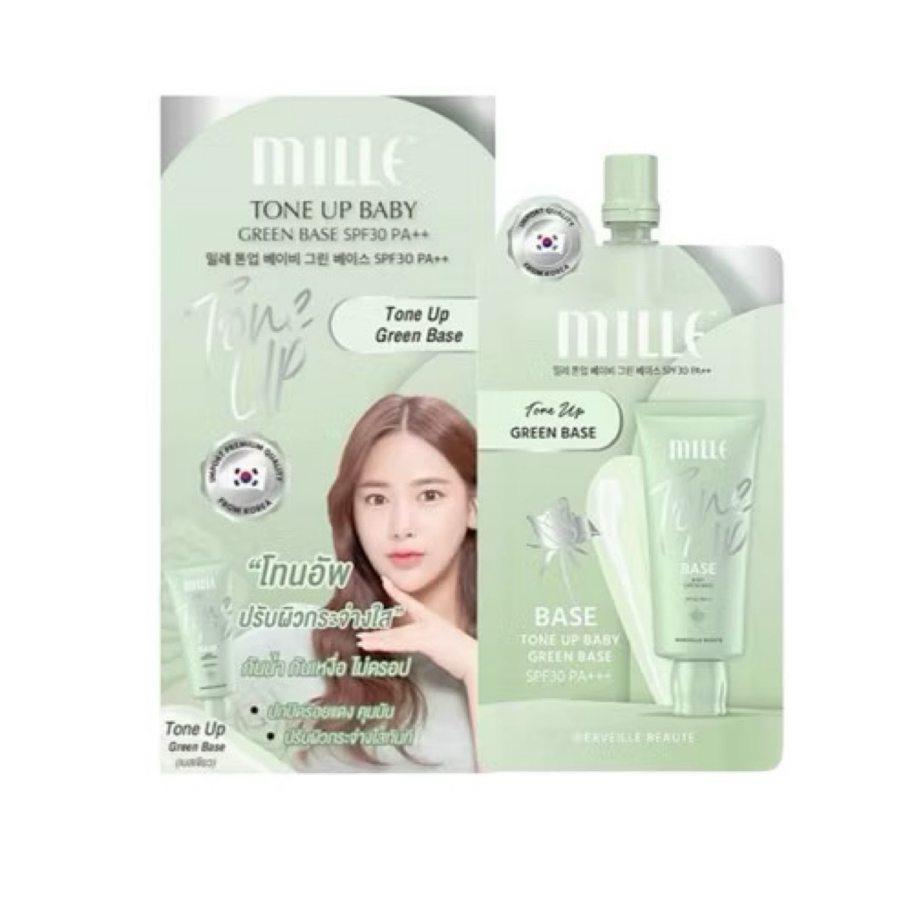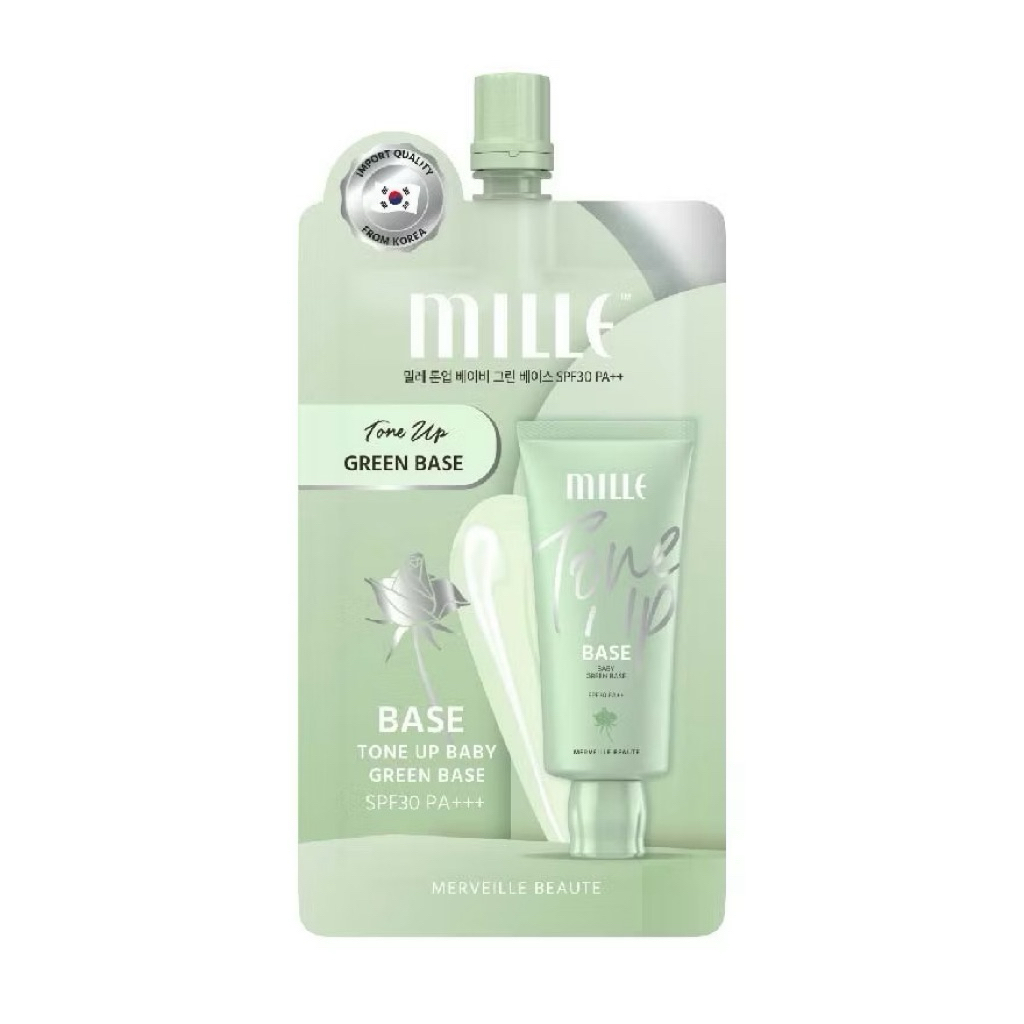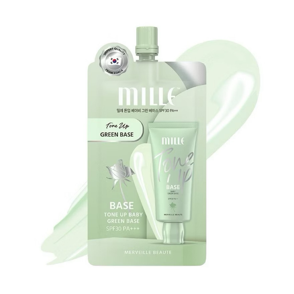 MILLE TONE UP BABY GREEN BASE SPF 30 PA++ เบสเขียว ลดรอยแดง 6g. (ยกกล่อง 6 ซอง )