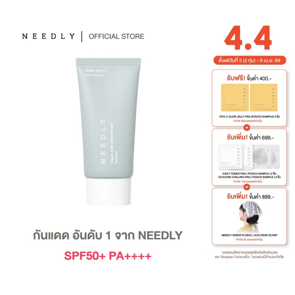NEEDLY VEGAN MILD MOISTURE SUN 50ML นีดลี่วีแกนไมลด์มอยเจอร์ซัน กันแดด SPF50+PA++++