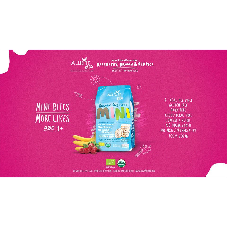Allrite Organic Mini Kids ออไรท์คิดส์ ธัญพืชออร์แกนิคอบกรอบ 30กรัม
