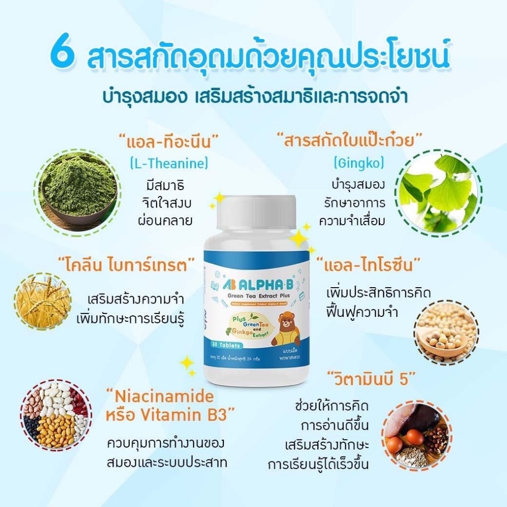 Alpha-B ผลิตภัณฑ์ บำรุงสมอง เพิ่มสมาธิ เพิ่มความจำ สำหรับเด็ก สมาธิสั้น และผู้สูงอายุ อัลไซเมอร์