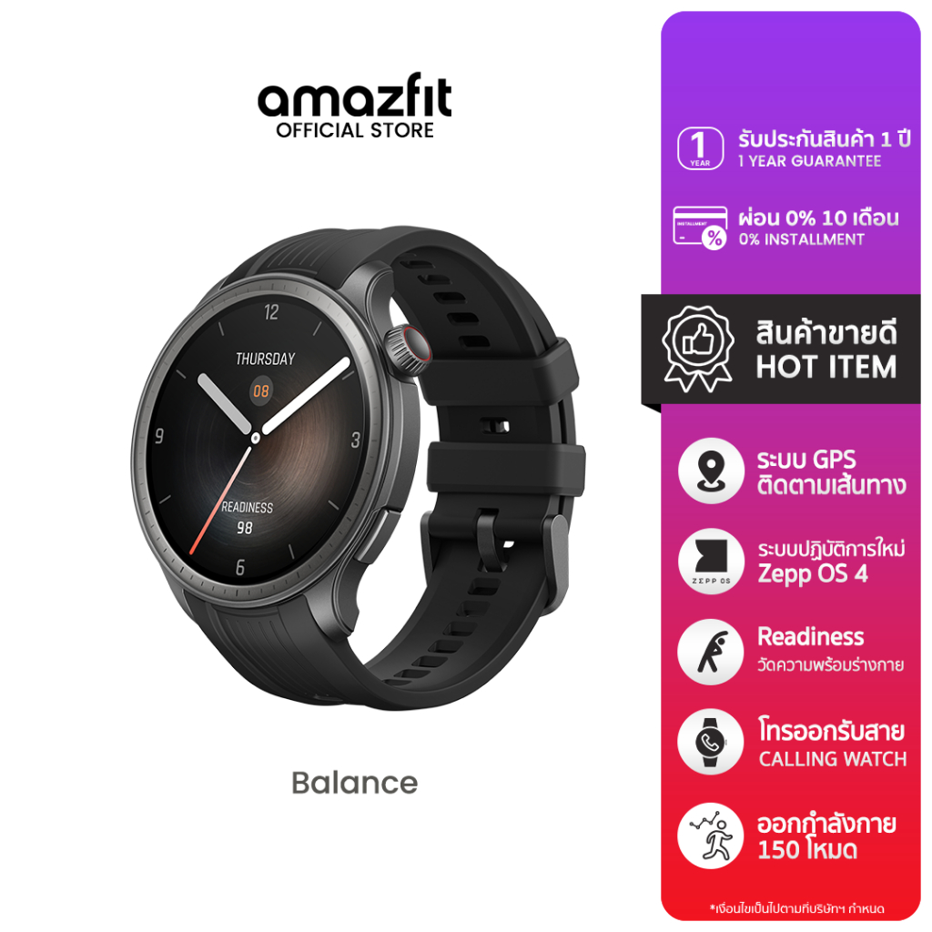 Amazfit Balance 46mm Smart Watch มี AI Fitness Coach ตรวจจับการนอนและสุขภาพ 24 ชม. Dual-Band GPS, Bluetooth