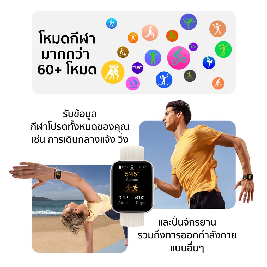 Amazfit Bip 3 Waterproof Smartwatch SpO2 นาฬิกาสมาร์ทวอทช์ วัดออกซิเจนในเลือด สัมผัสได้เต็มจอ Smart watch สมาร์ทวอทช์