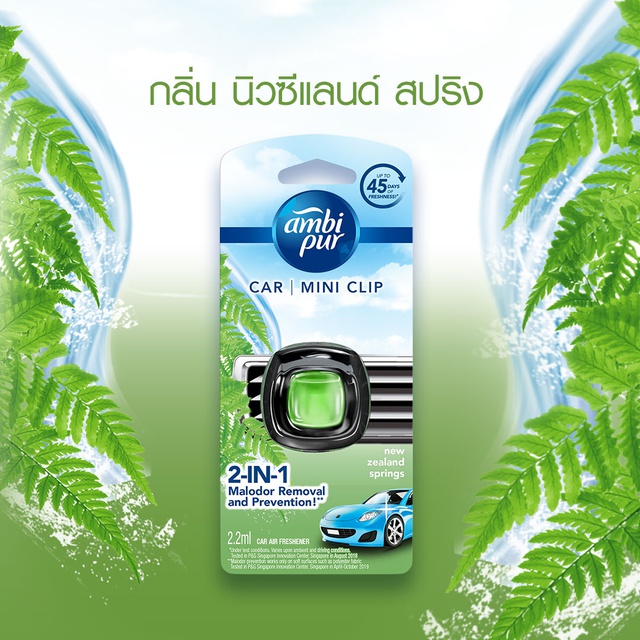 AmbiPur Car Mini Series Air Freshener แอมบิเพอร์คาร์มินิ น้ำหอมปรับอากาศ กลิ่นนิวซีแลนด์สปริง 2.2ml