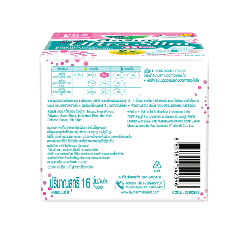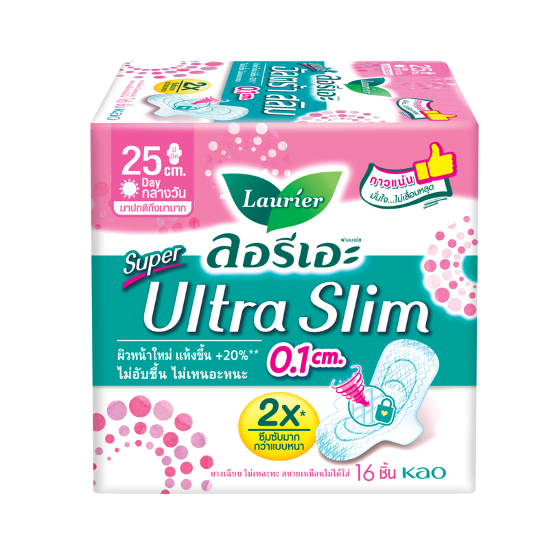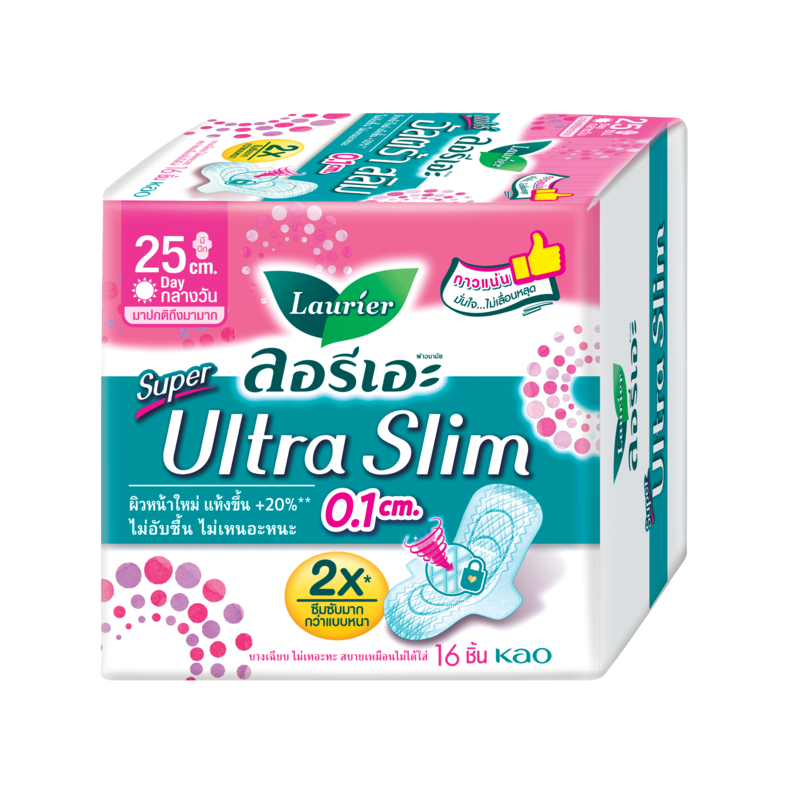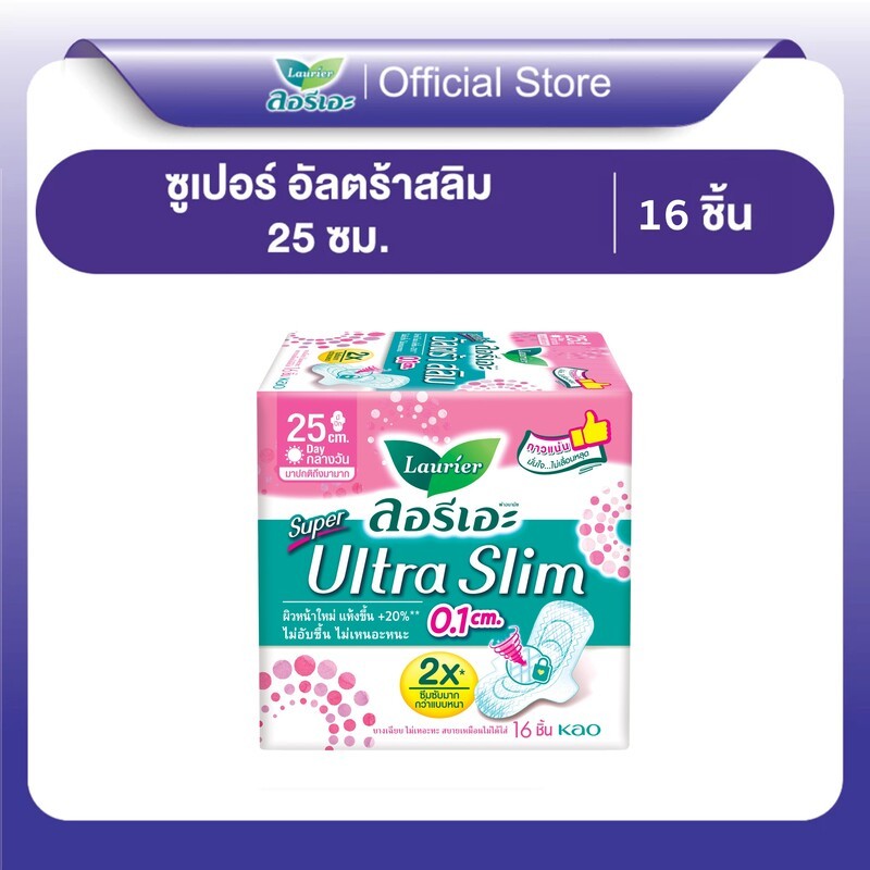 ลอรีเอะ ซูเปอร์อัลตร้าสลิม กลางวัน 25 ซม 16 ชิ้น Laurier SuperUltraSlim ผ้าอนามัย,แบบาง 0.1
