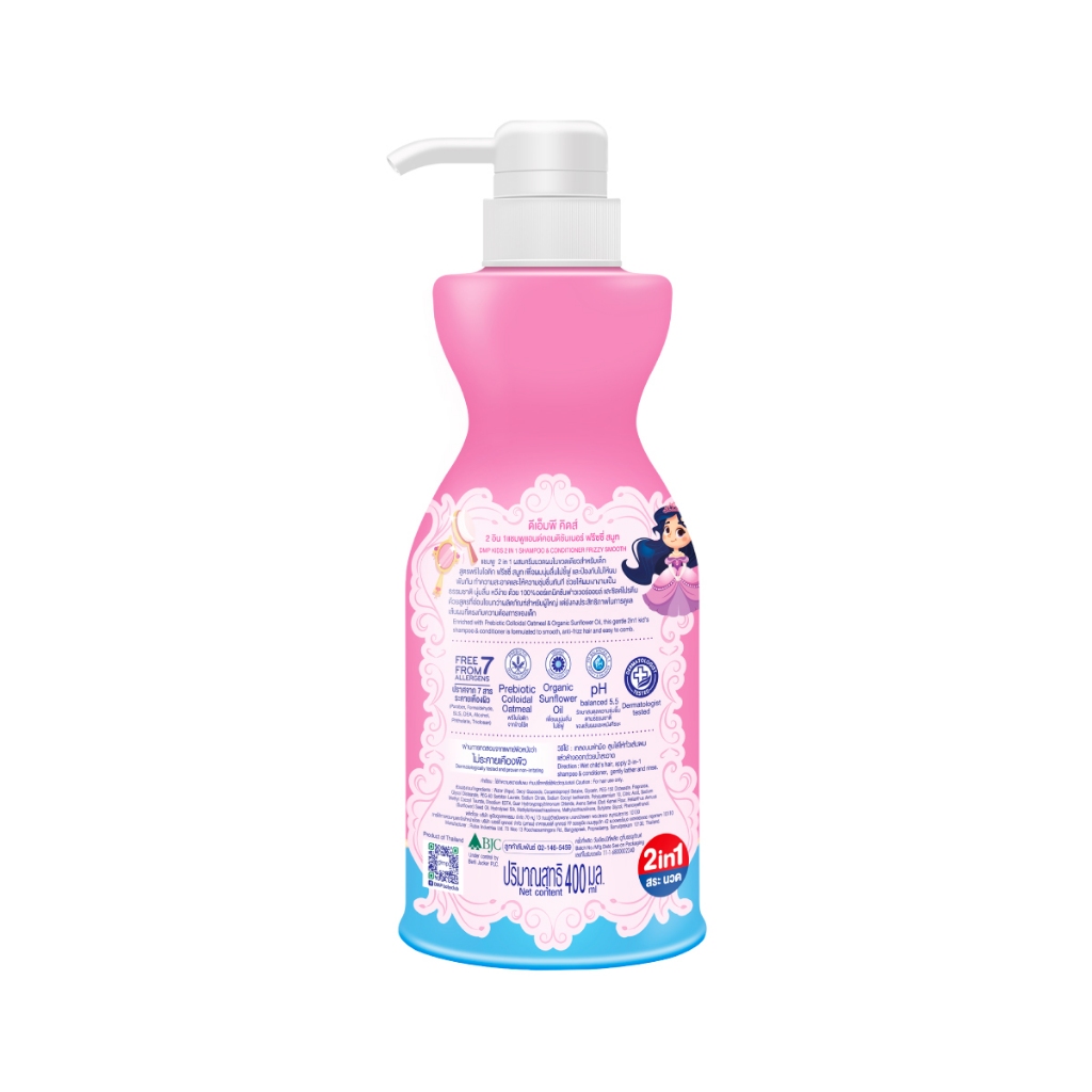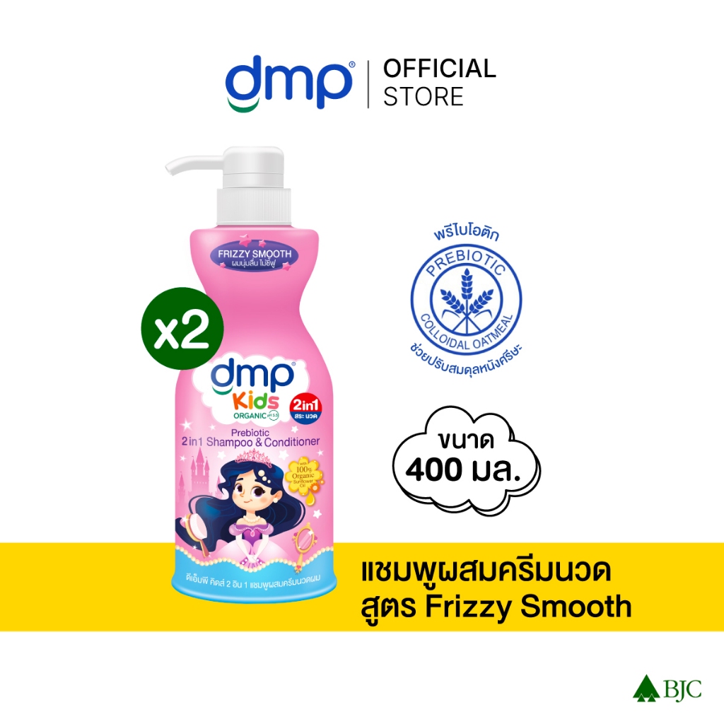 (2 ขวด)ดีเอ็มพี คิดส์ 2in1 แชมพูผสมครีมนวดผสมพรีไบโอติก สูตรฟริซซี่ สมูท 400 มล. DMP KIDS 2IN1 FRIZZY SMOOTH
