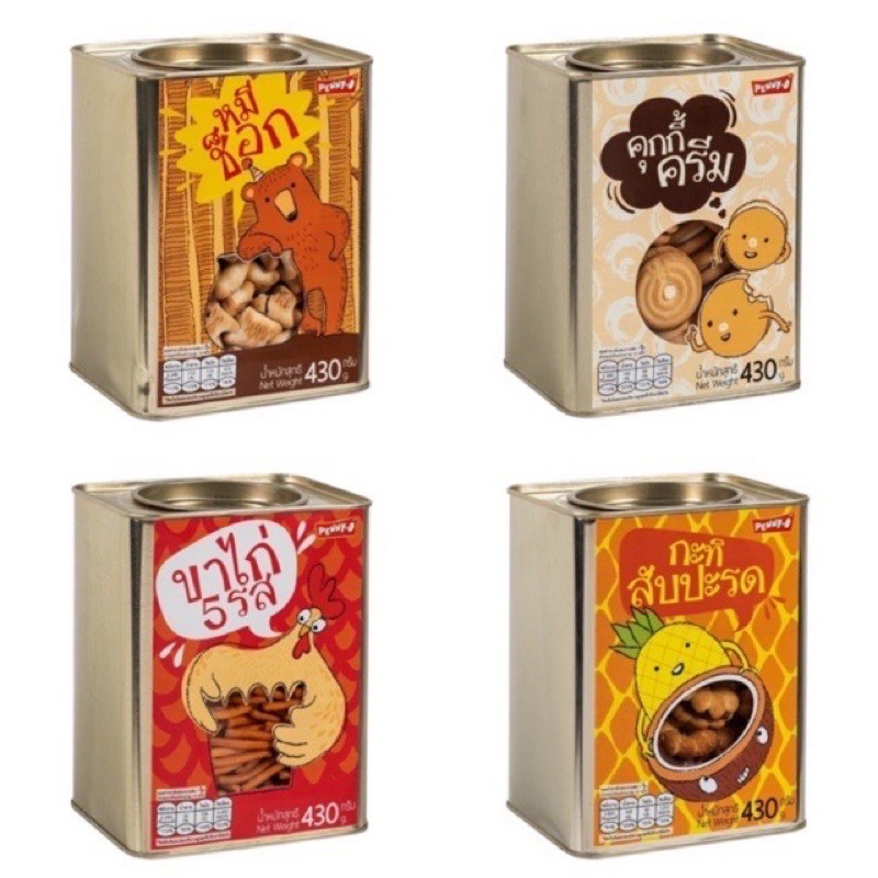 ขนมปี๊บ ตราเพนนีโอ 400-430กรัม กะทิสับปะรด,ขาไก่ 5รส,คุกกี้ครีม,หมีช็อค