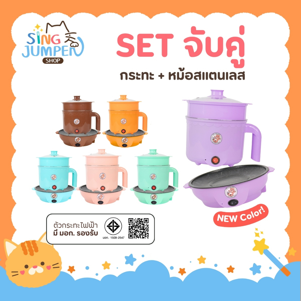 เซตคู่ หม้อ+กระทะ ลายหมี ได้2ชิ้น สแตนเลส หม้ออเนกประสงค์ กระทะมินิ เตาปิ้งย่างไฟฟ้า หม้อสุกี้ กระทะย่างเนย หม้อมาม่า