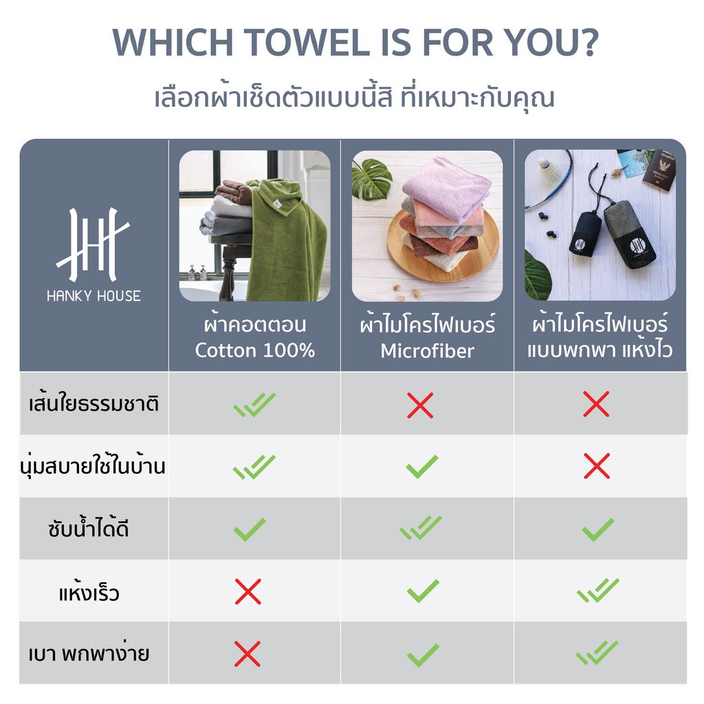 ของแท้ ✅ Hanky House ผ้าเช็ดตัวไมโครไฟเบอร์ แห้งไว เดินป่า พกง่าย ซับน้ำดี ผืนใหญ่
