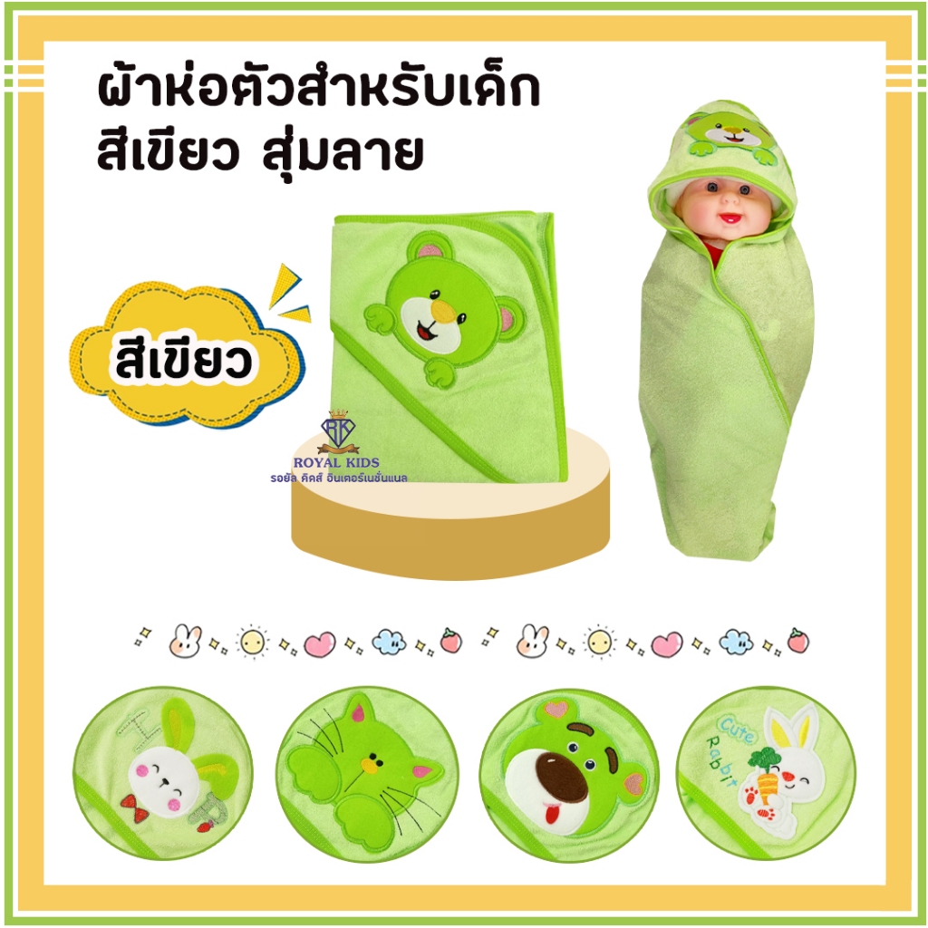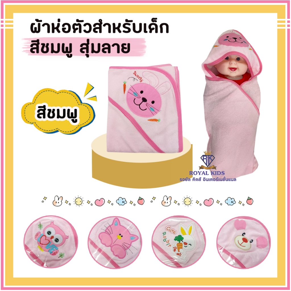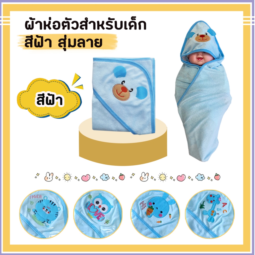 C002 ผ้าห่อตัวเด็กแรกเกิด ผ้าห่อตัวเด็กอ่อน ผ้าห่มเด็ก มีหมวก ปักหน้าการ์ตูนน่ารักๆ ผ้าห่อตัวชั้นเดียว