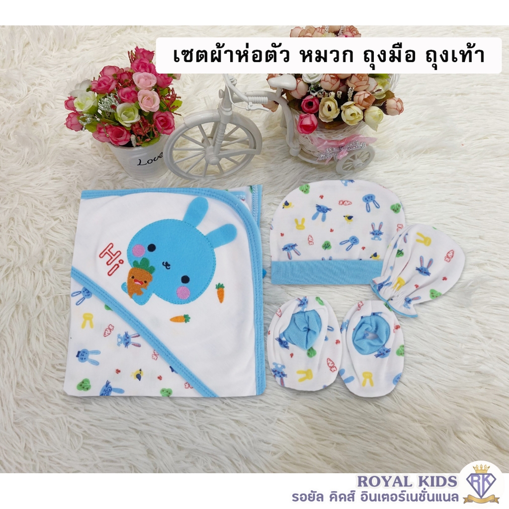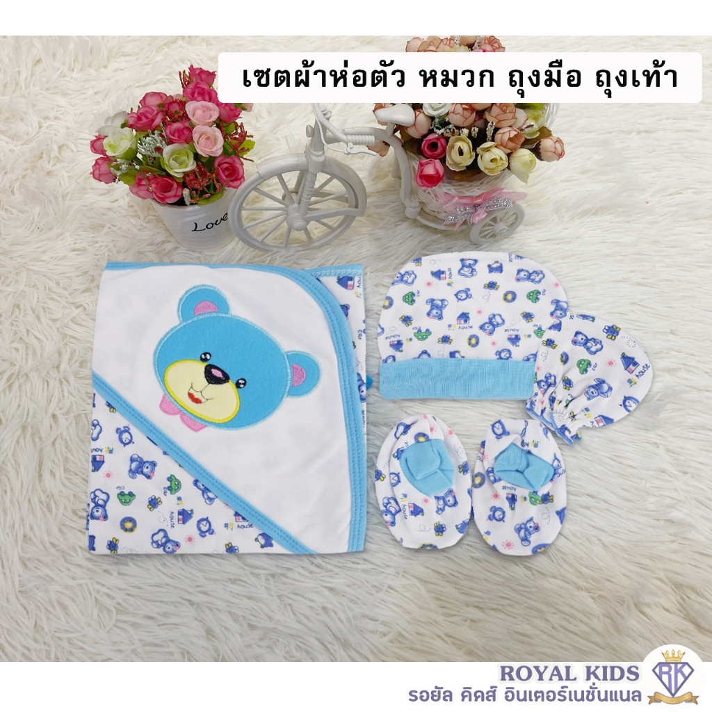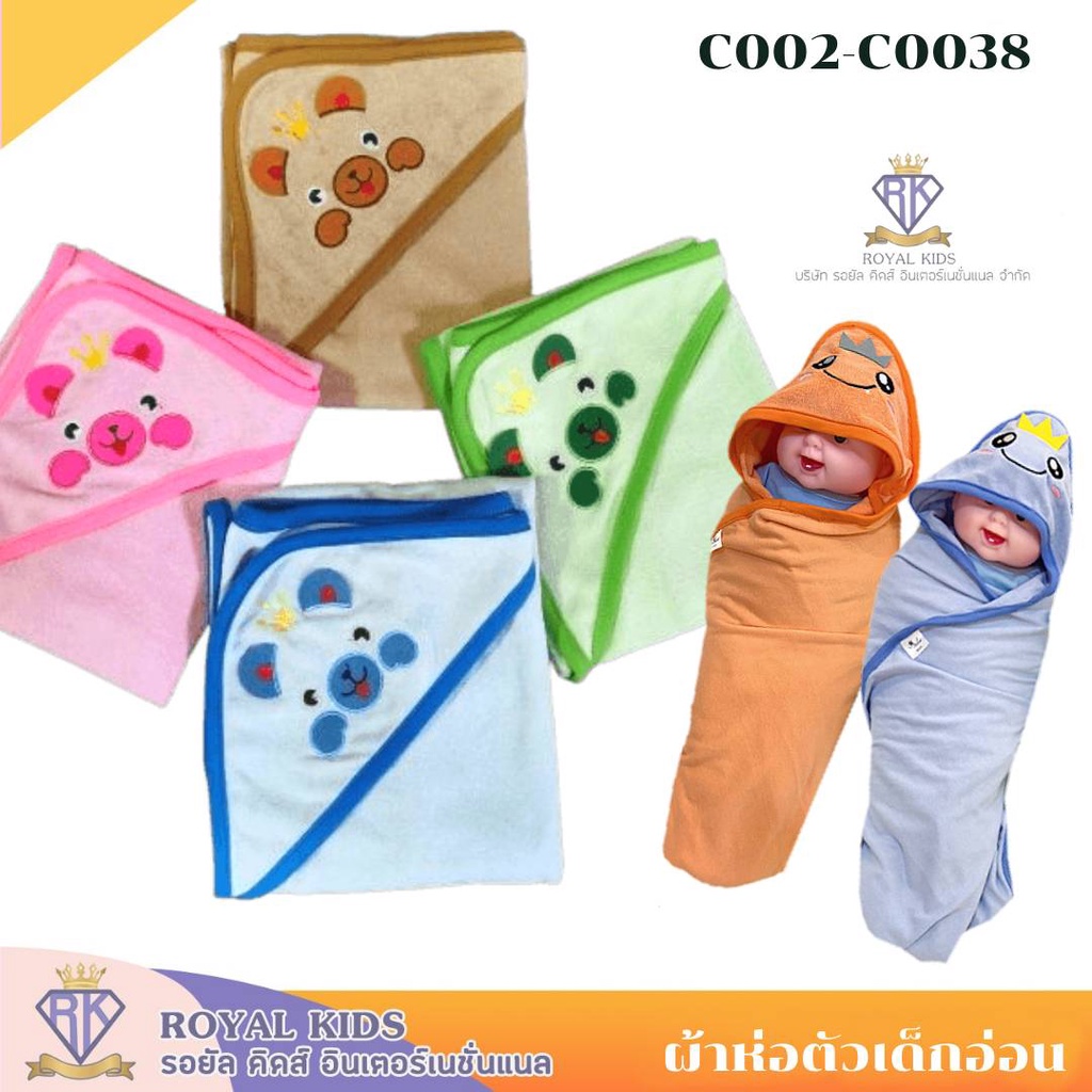 C002 ผ้าห่อตัวเด็กแรกเกิด ผ้าห่อตัวเด็กอ่อน ผ้าห่มเด็ก มีหมวก ปักหน้าการ์ตูนน่ารักๆ ผ้าห่อตัวชั้นเดียว