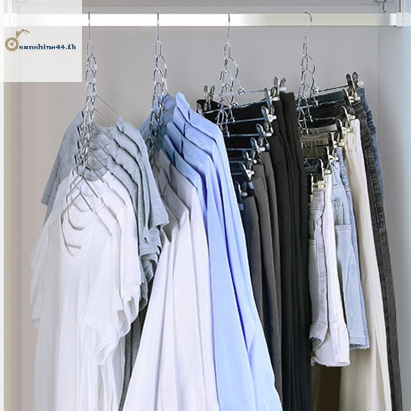 FOURSUN 1/5pcs ไม้แขวนเสื้อสแตนเลส Organizer ประหยัดพื้นที่พับตู้เสื้อผ้า Rack สําหรับที่มีประสิทธิภาพเสื้อผ้า TH