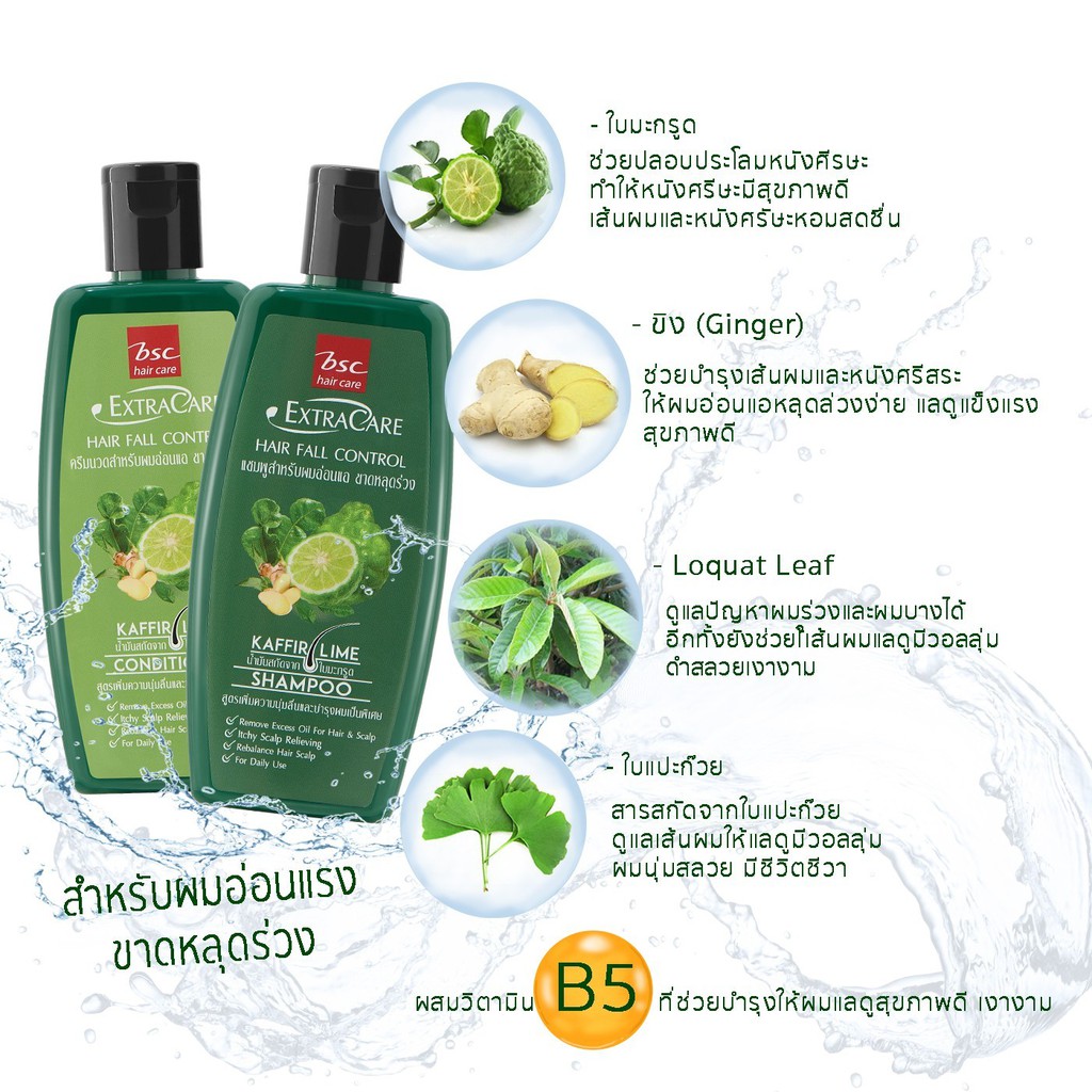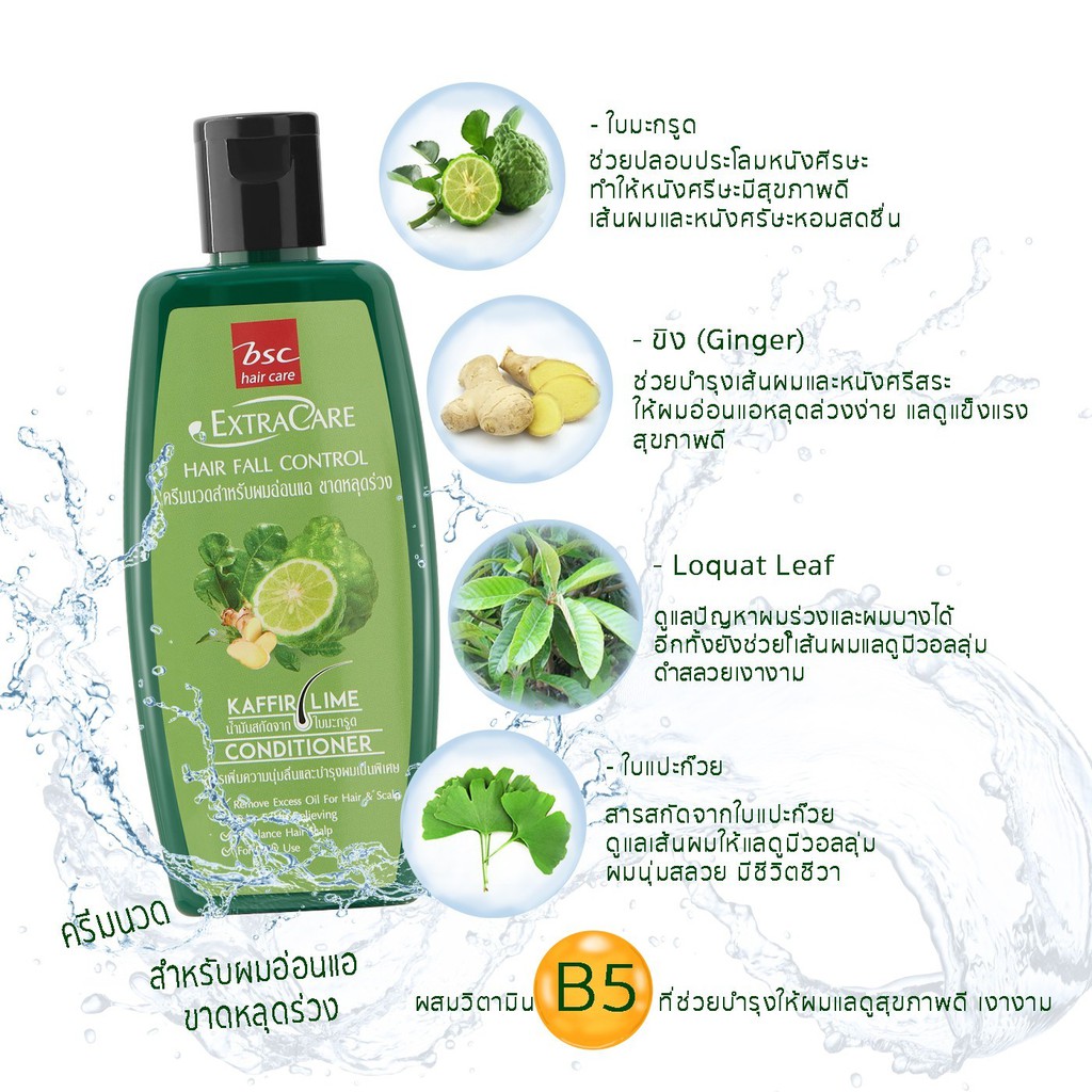 BSC EXTRA CARE HAIR FALL CONTROL CONDITIONER สกัดจากมะกรูดและขิง ครีมนวดผมสำหรับผมขาด หลุดร่วง