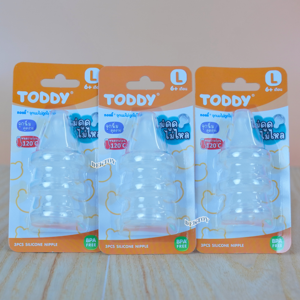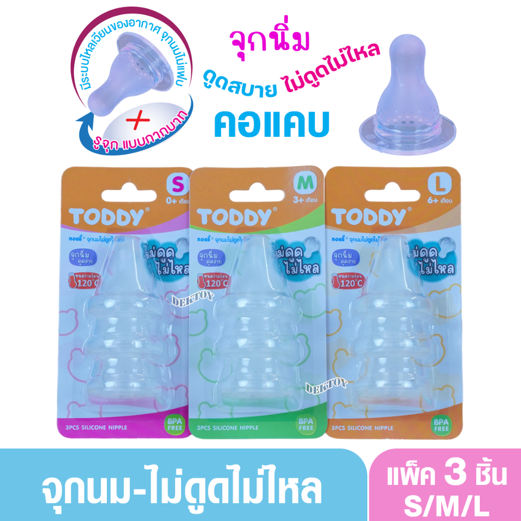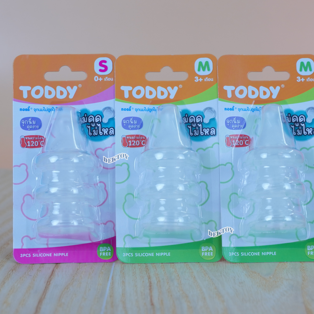 แคบ จุกนมไม่ดูดไม่ไหล Toddy ทอดดี้ จุกนมสำหรับขวดคอแคบ จุกนิ่มดูดง่าย แพ็ค3ชิ้น
