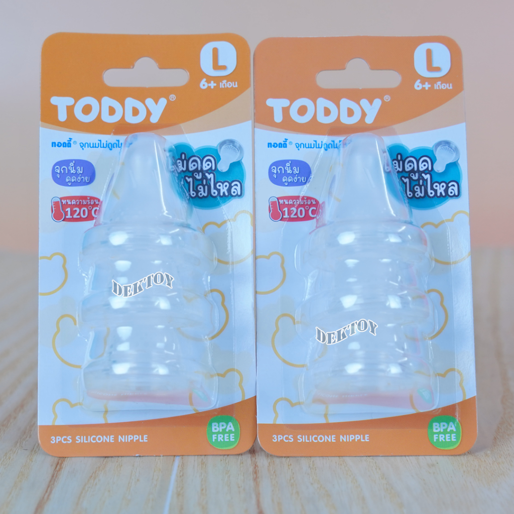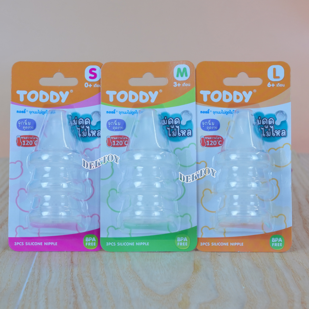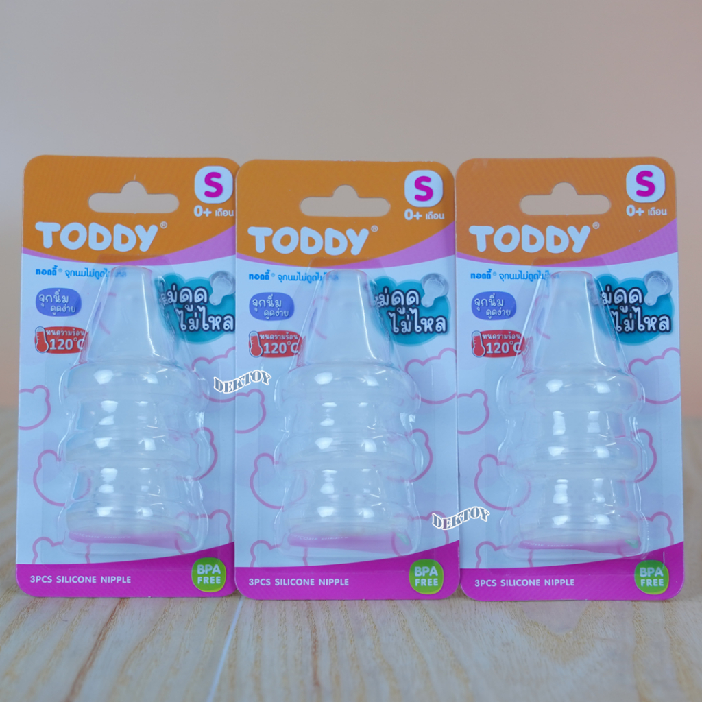 แคบ จุกนมไม่ดูดไม่ไหล Toddy ทอดดี้ จุกนมสำหรับขวดคอแคบ จุกนิ่มดูดง่าย แพ็ค3ชิ้น
