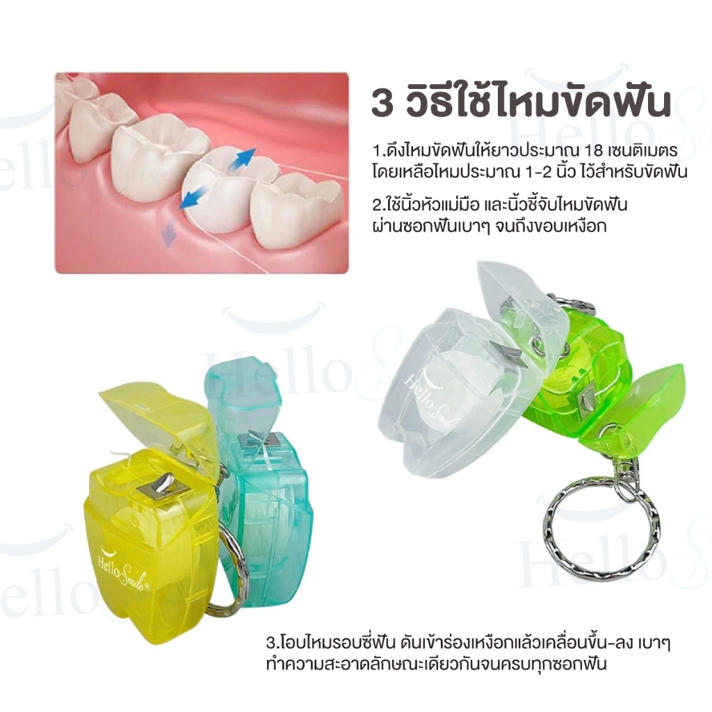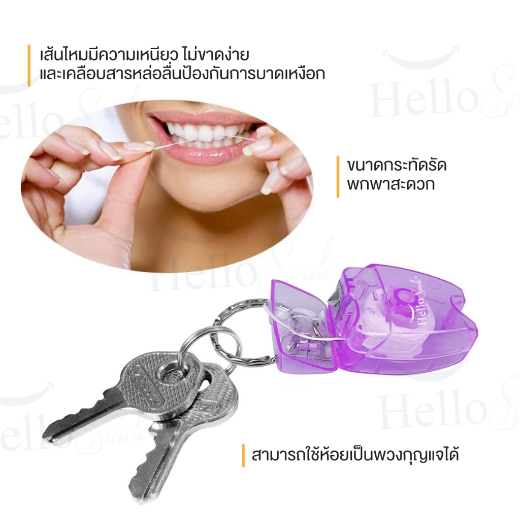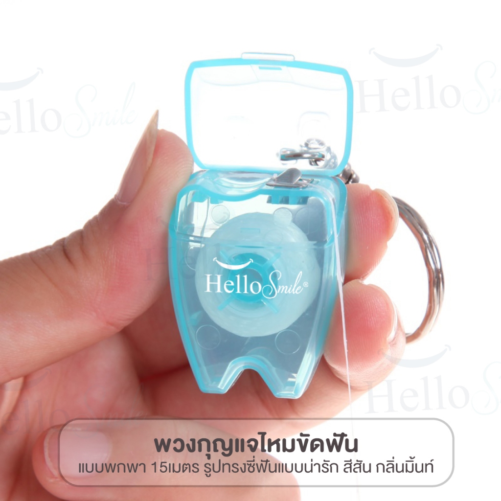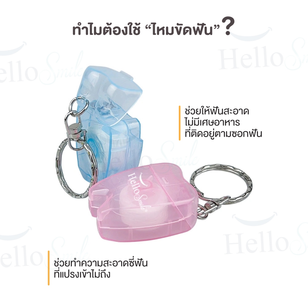 Hellosmile Floss Keychain Teeth Shape ฮัลโหลสมายล์ พวงกุญแจ ไหมขัดฟัน ไหมขัดฟันพกพา ช่องปาก สีสดใส ทำความสะอาด