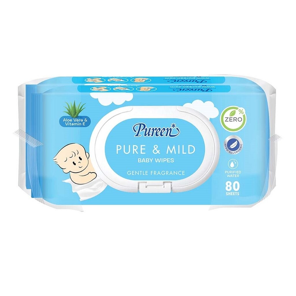 Pureen เพียวรีน เบบี้ ไวพส์ เพียว แอนด์ มายด์ 80 แผ่น แพคคู่