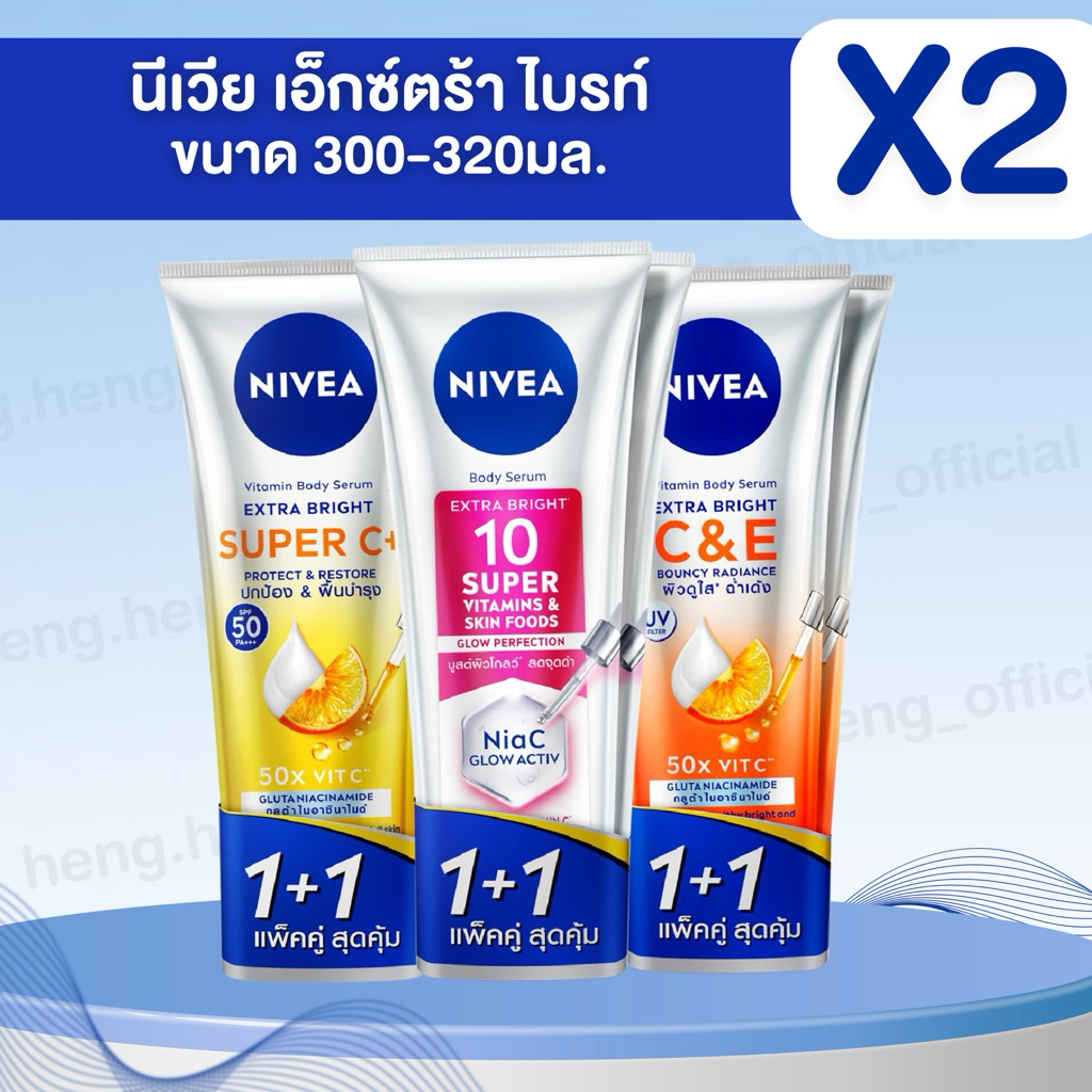 [แพ็คคู่ 2 หลอด] 🩷Nivea นีเวีย เอ็กซ์ตร้า ไบรท์ โลชั่น 300 - 320มล. ซุปเปอร์ 10 / ซี แอนด์ อี / ซุปเปอร์ ซี