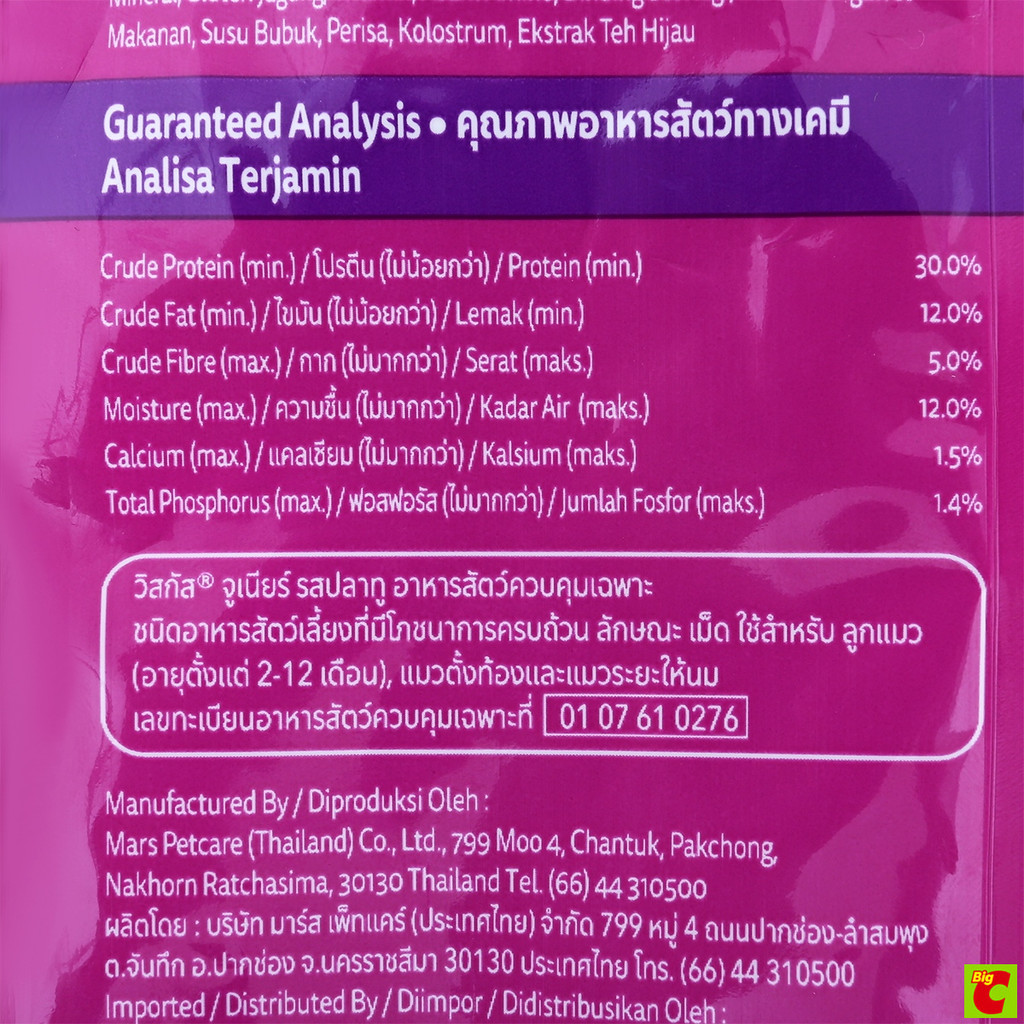 วิสกัส จูเนียร์ อาหารแมวชนิดเม็ด สำหรับแมวตั้งท้องและลูกแมว รสปลาทู 2.7 กก.