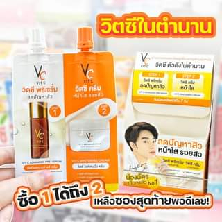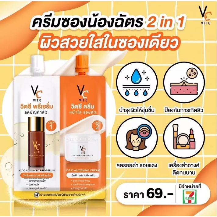(1ซอง) ครีมซองน้องฉัตร ดับเบิ้ลวิตซี วิตซีพรีเซรั่ม&วิตซีครีม VC VIT C 2 IN 1