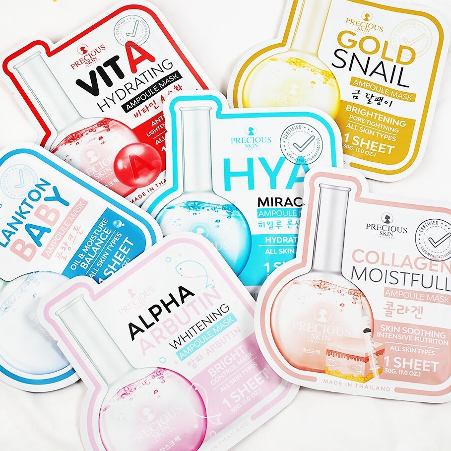 (กล่อง 10 ซอง) Precious Skin Thailand สูตร Hya Miracle (สีฟ้า) แผ่นมาส์กหน้า (ปริมาณ 30 กรัม)