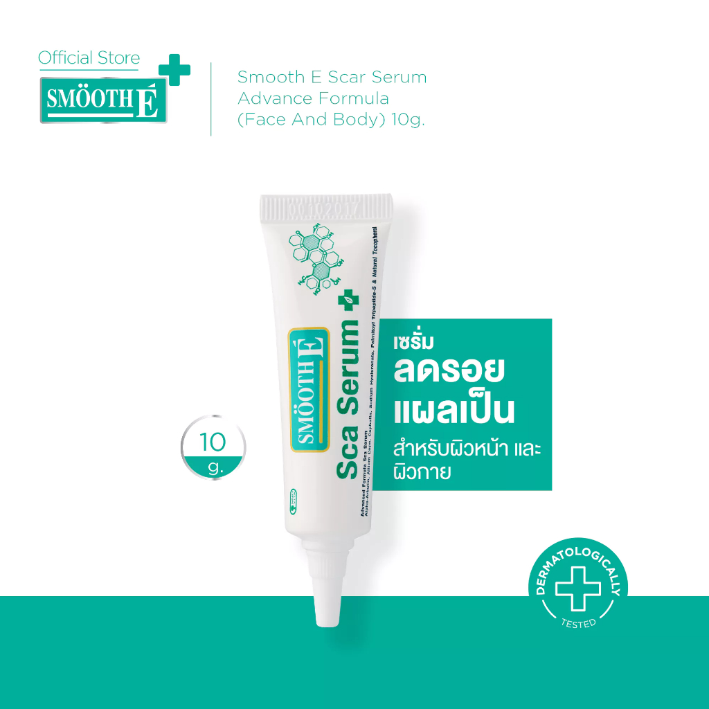 Smooth E เซรั่มลดรอยแผลเป็น รอยดำ รอยแดง ผิวหน้าและผิวกาย Scar Serum Advance Formula (Face And Body) 10G. สมูทอี