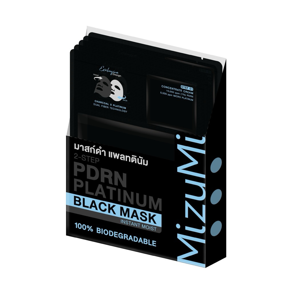 ส่งฟรี/มีไลฟ์ [กล่อง 5 ชิ้น] MizuMi 2-STEP PDRN PLATINUM BLACK MASK 30ml + 1g พีดีอาร์เอ็น แพลทตินัม แบล็กมาส์ก อินสแตน