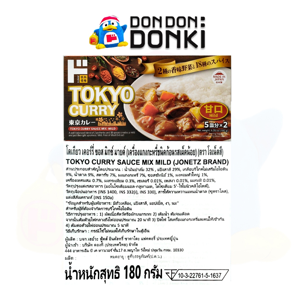 โตเกียว เคอร์รี่ ซอส มิกซ์ มีเดียม ฮอต (เครื่องแกงกระหรี่ชนิดก้อนรสเผ็ด) TOKYO CURRY SAUCE MIX MEDIUM HOT (JONETZ BRAND)