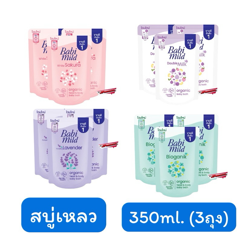 (3ถุง)เบบี้มายด์สบู่เหลว รุ่นถุงเติม ขนาด 350 มล Babi Mild Ultra Mild Head&Body BabyBath