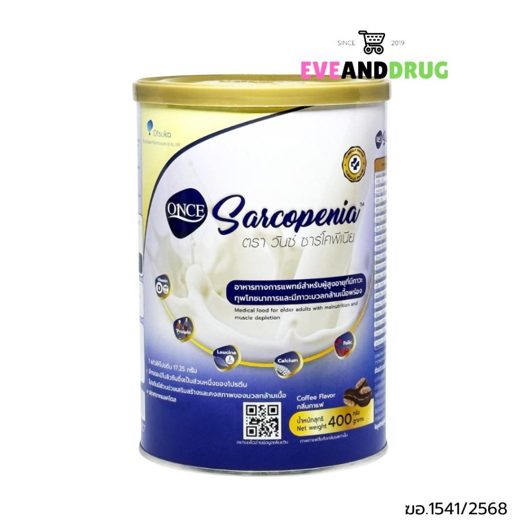 ONCE Sarcopenia 400g วันซ์ ซาร์โคพีเนีย กลิ่นกาแฟ ภาวะมวลกล้ามเนื้อพร่อง จำนวน 1 กระป๋อง