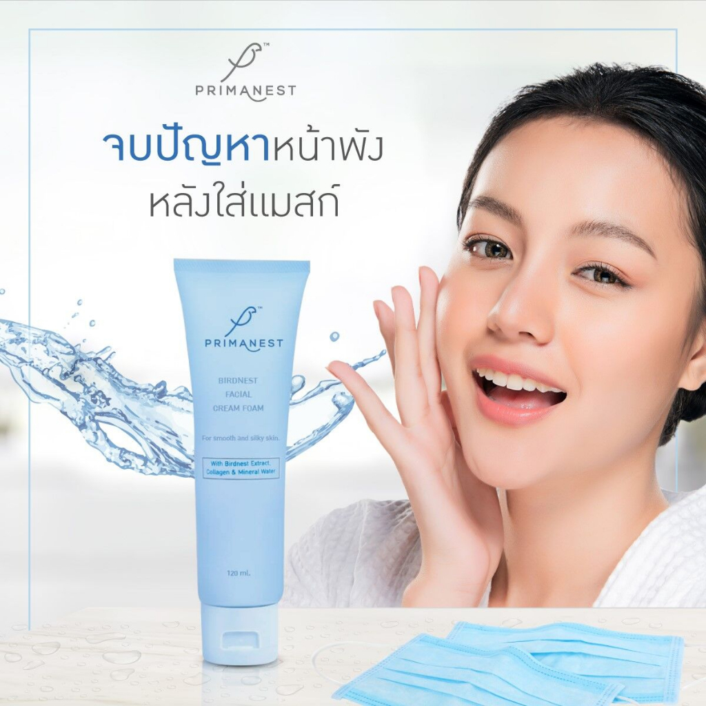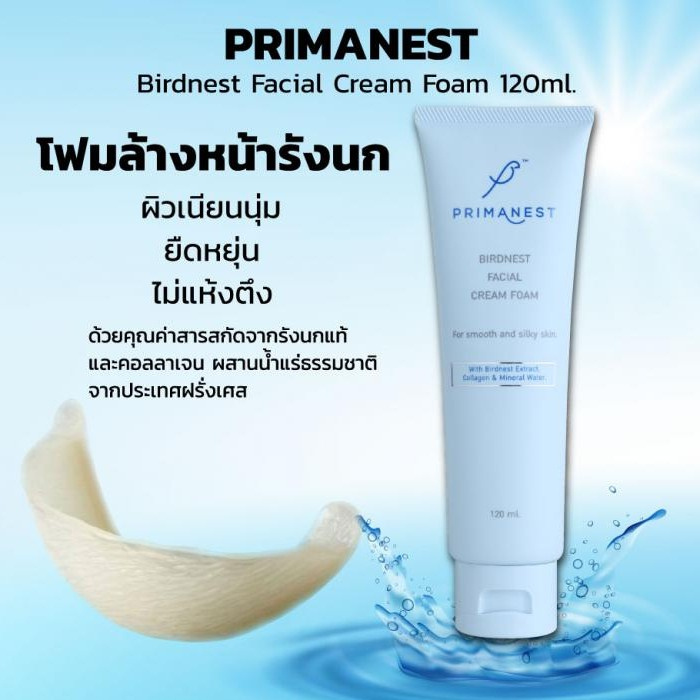 PRIMANEST Birdnest Facial Cream Foam 120ml ผลิตภัณฑ์ทำความสะอาดผิวหน้า สูตรอ่อนโยน จากพรีมาเนสท์