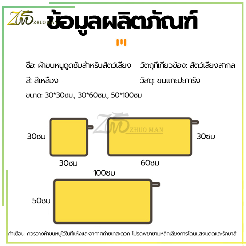 ผ้าขนหนูสัตว์เลี้ยง มี 3 ขนาด คุณภาพดี ซึมซับน้ำได้ดีเช็ดแห้งเร็ว ผ้าหนาพิเศาสองชั้น ทนทาน ไม่ขาดง่าย