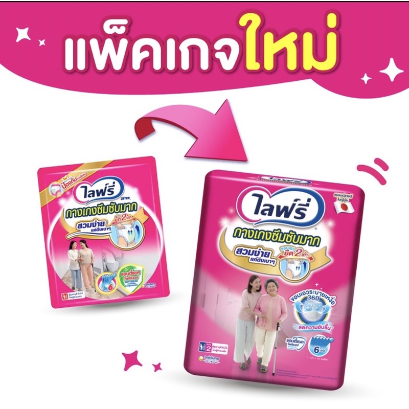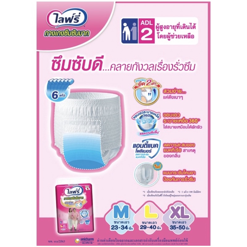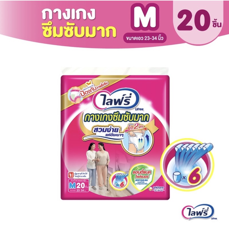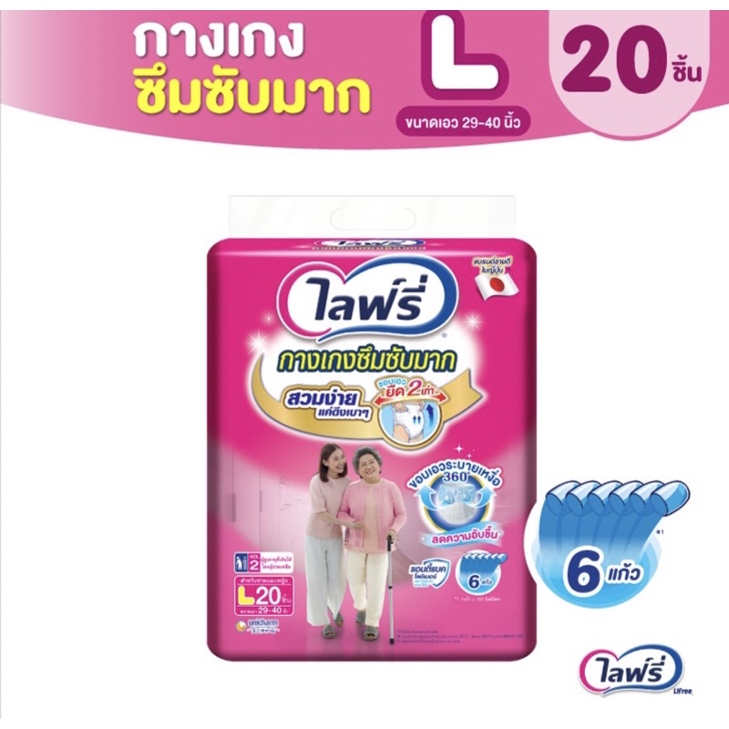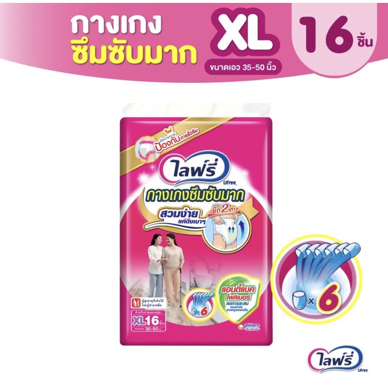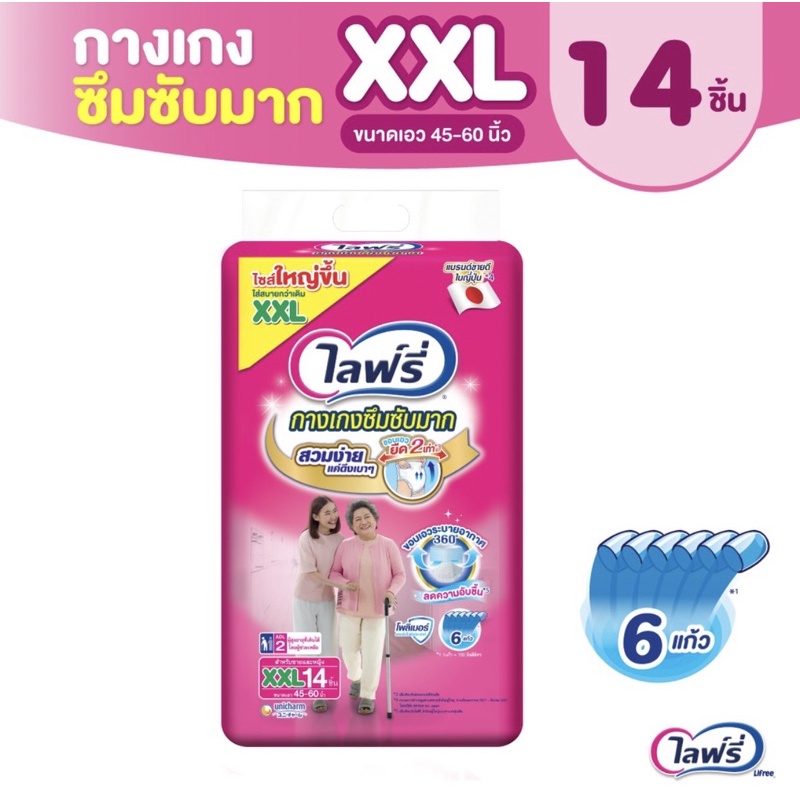 Lifree ไลฟ์รี่ กางเกงซึมซับมาก แอนตี้แบคโพลิเมอร์ (เลือกไซส์)แพ็ค1ห่อ