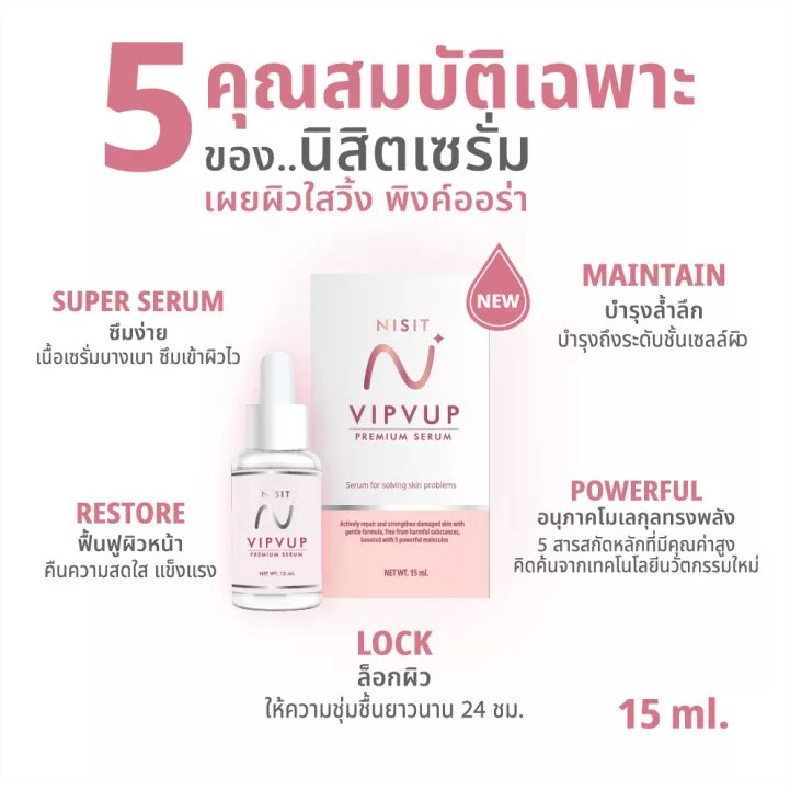 Nisit Serum นิสิต เซรั่ม [15 ml./ขวด] [1 ขวด] เซรั่ม วิบวับ ใสวิงค์ พิงค์ออร่า Nisit Serum วิบวับ นิสิตเซรั่มแท้ กระชับ