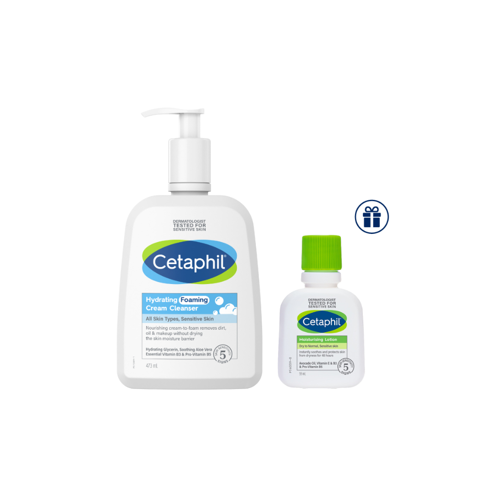 [เซ็ตสุดคุ้ม] Cetaphil Hydrating Foaming Cream Cleanser 473 ml. แถมฟรี Cetaphil Moisturising Lotion 59ml