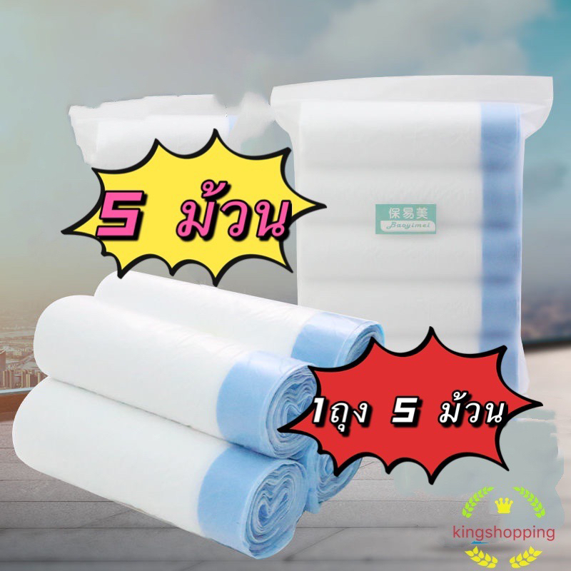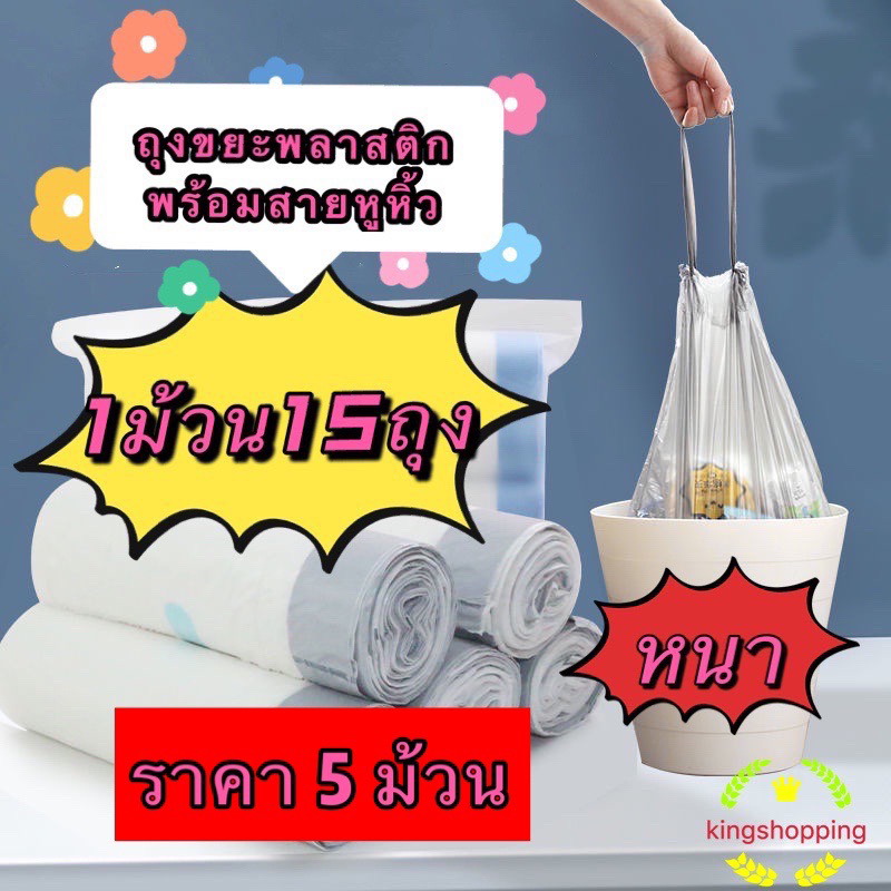 kingshopping LJD05(ร้านไทย) (ราคา 5 ม้วน )ถุงขยะพลาสติกพร้อมสายหูหิ้ว แบบหนา ขนาด 45 * 50 Cm.(ผลิตภัณฑ์ดูแลบ้าน ถุงขยะ)