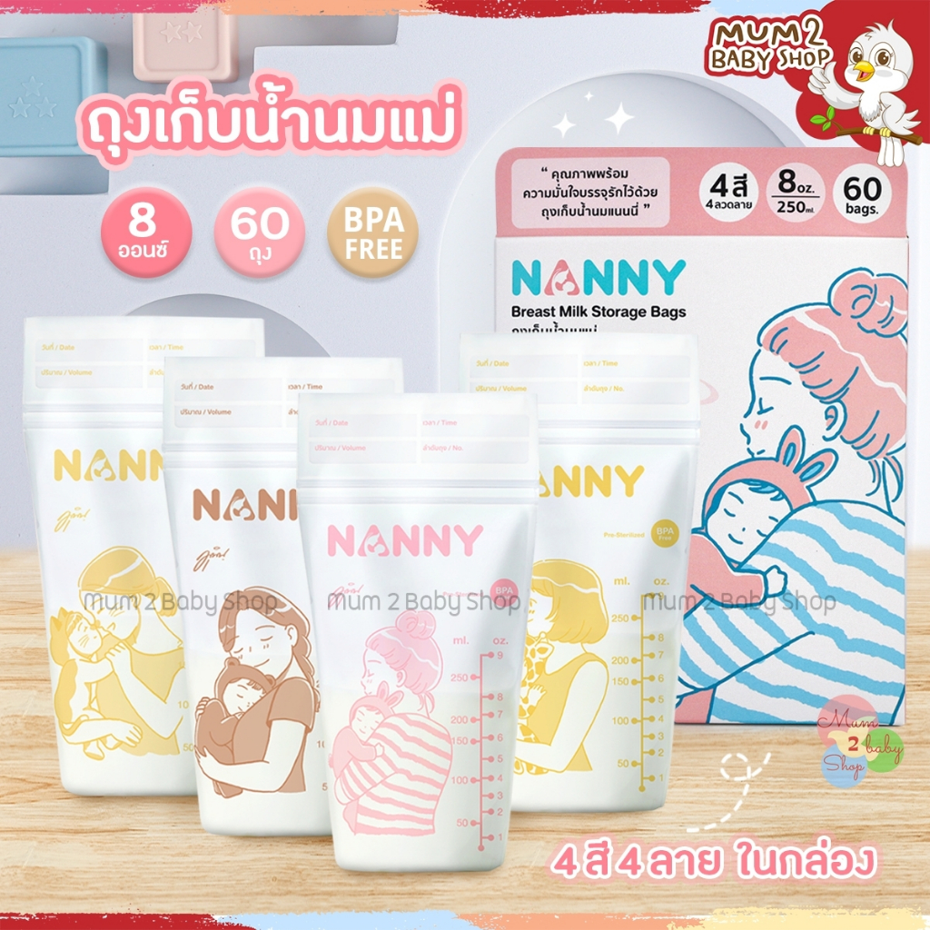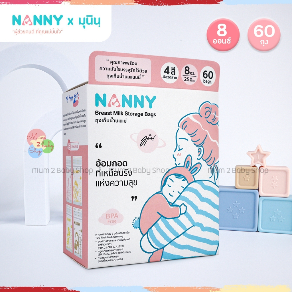 (ND003) ถุงเก็บน้ำนมแม่ NANNY แนนนี่ 8ออนซ์ บรรจุ60ถุง ใหม่ล่าสุดลายมุนิน