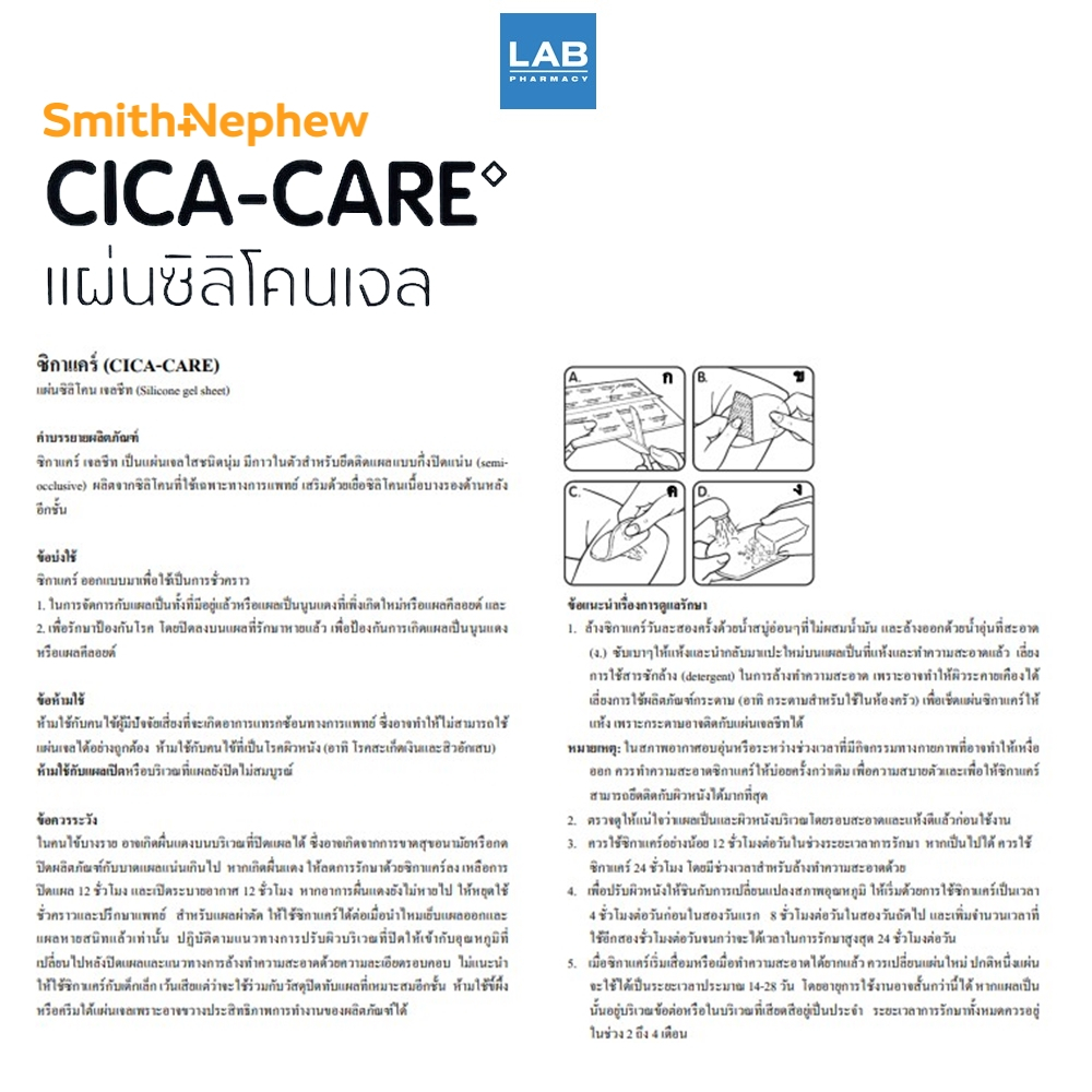 CICA CARE Silicone Gel Sheet 1 Sheet/box - ซิกาแคร์ ซิลิโคน เจล ชีท แผ่น ซิลิโคน เจล สำหรับแผลเป็นที่มีลักษณะนูนแดง