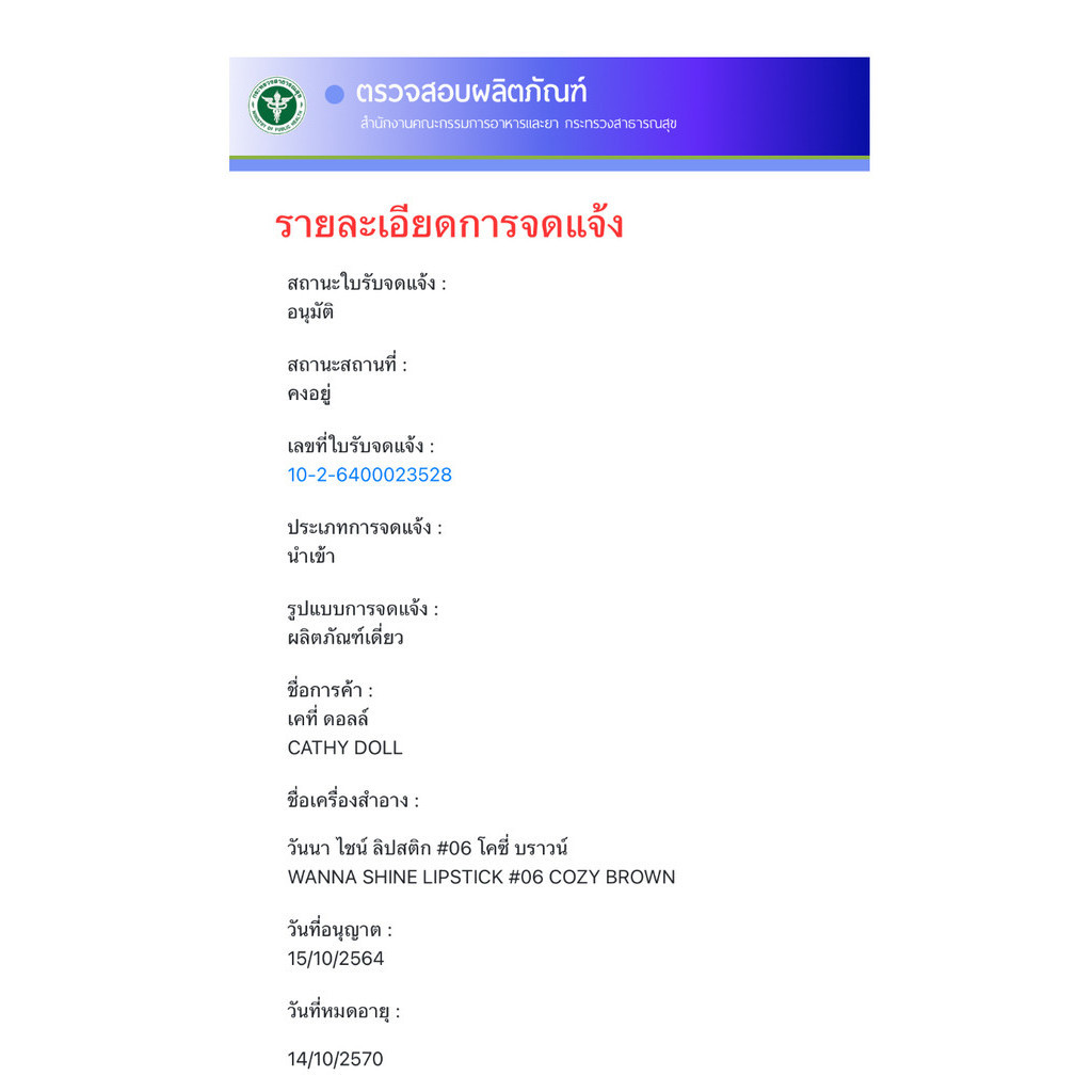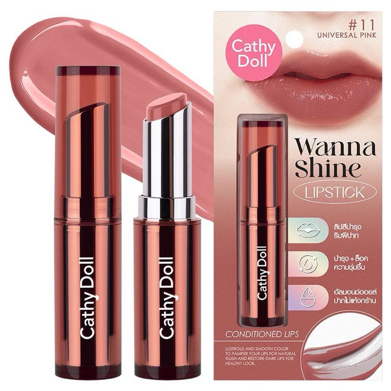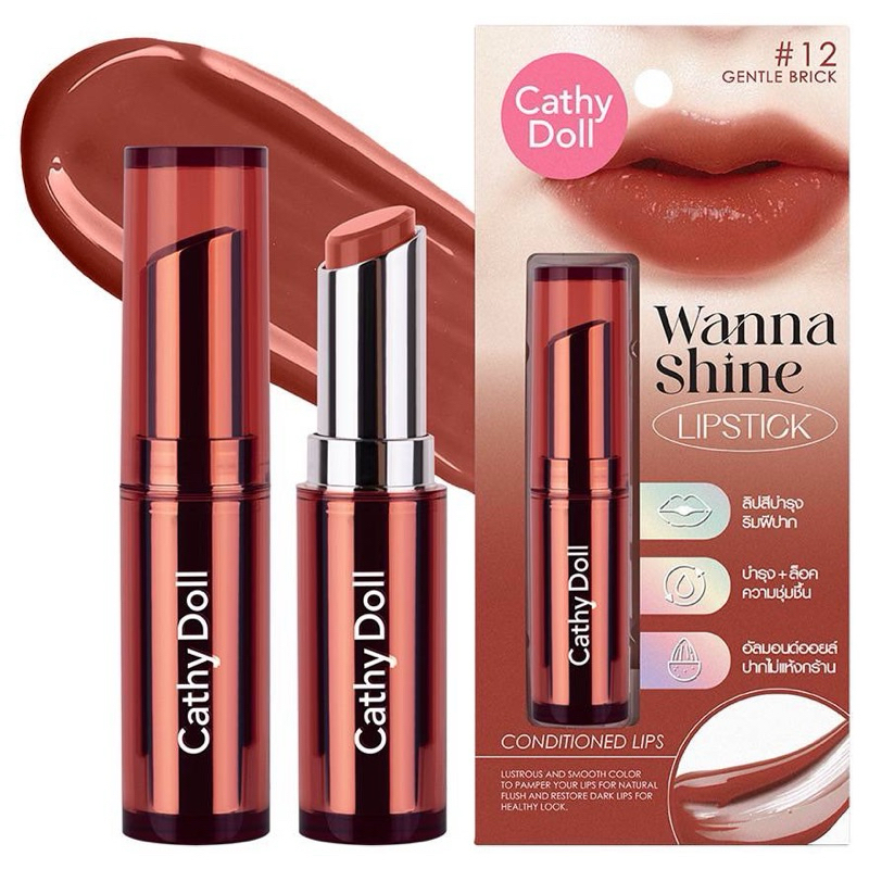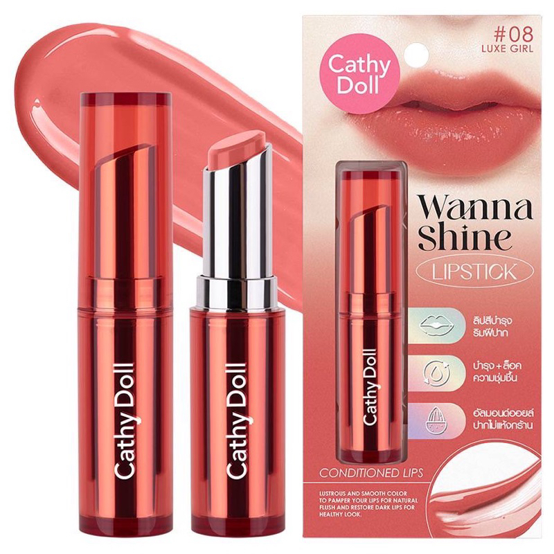 Cathy Doll Wanna Shine Lipstick 3g เคที่ดอลล์ วันนาไชน์ ลิปสติก 3g เนื้อวาว ลิปมัน