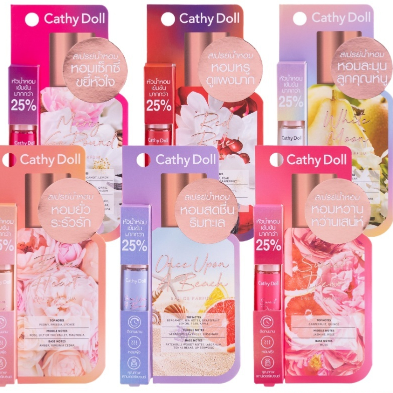 Cathy Doll Eau De Parfum 5ml. เคที่ดอลล์ โอ เดอ พาร์ฟูม สเปรย์น้ำหอม มี 12 กลิ่น (1ชิ้น)